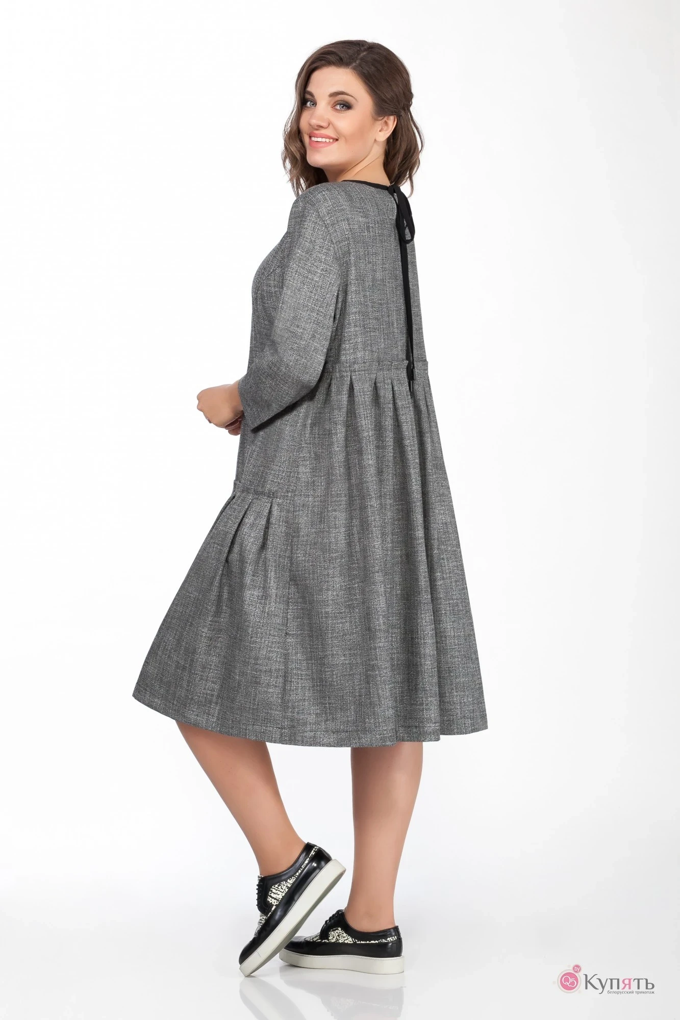 Элегантное повседневное платье свободного силуэта с круглым вырезом горловины, рукавами длиной ниже локтя и завязками сзади на тесьму с эглетами.