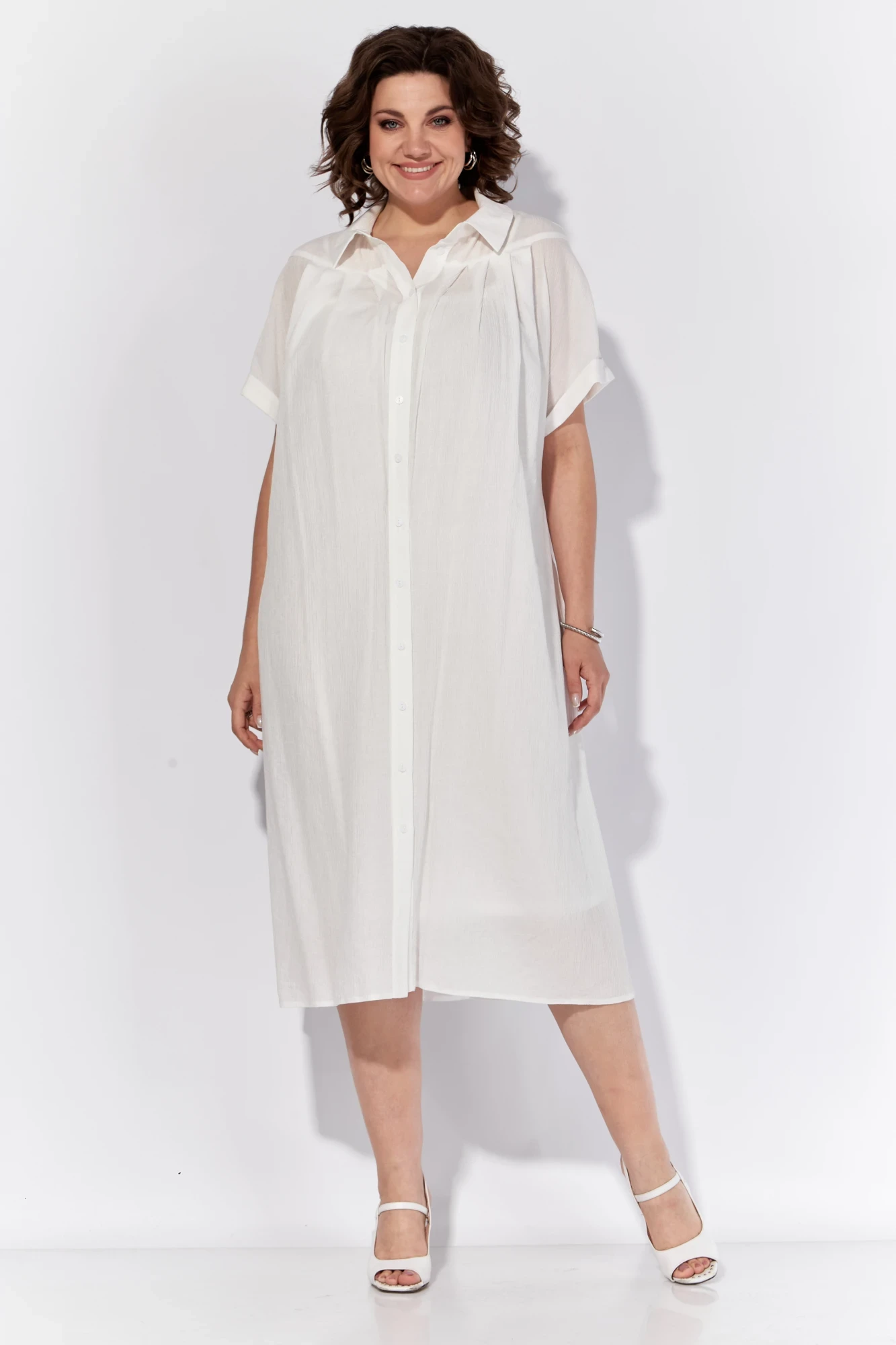 Свободное платье со сквозной застежкой планкой на пуговицы. От круглой кокетки заложены глубокие складки. Рукав спущенный с отворотом. Пояс из основной ткани. Длина изделия - 113 см. Длина рукава от горловины - 32 см.
