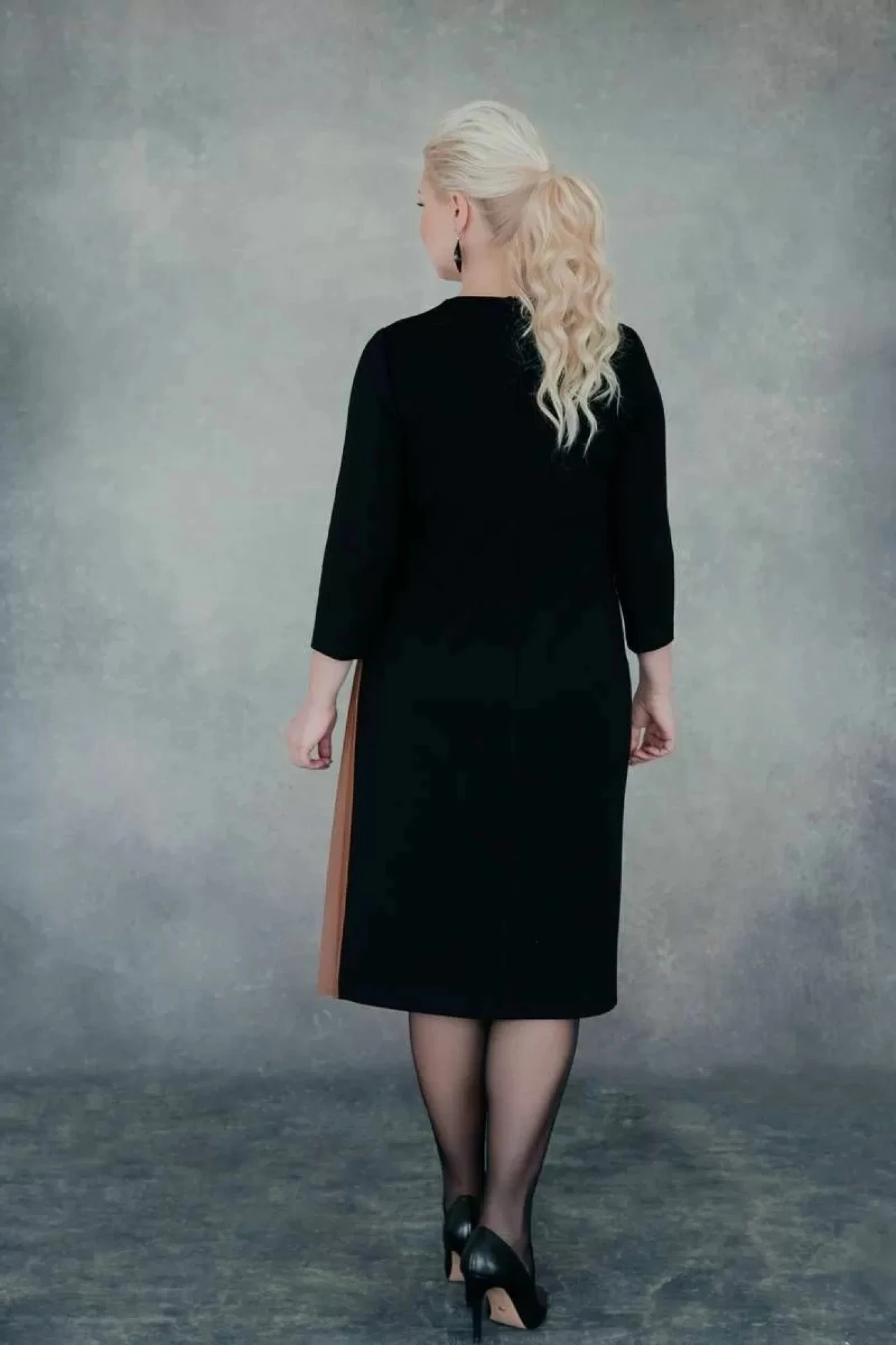 шву спинки. Перед ассиметричный со вставкой из эко-кожи с эффектом гофре.