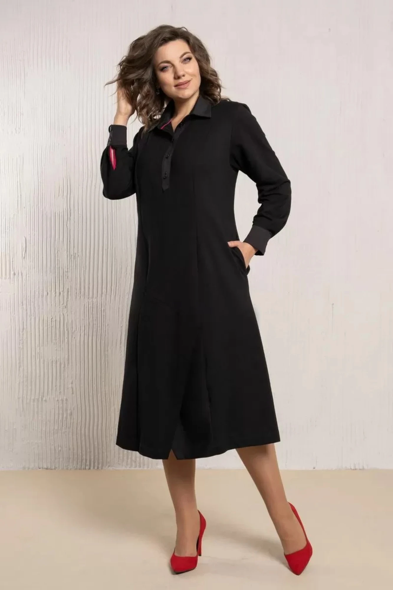 Трикотажное платье полуприлегающего силуэта. Трикотаж теплый, приятный на ощупь, хорошо тянется. Застежка на пуговицы спереди. В боковых швах удобные карманы. Низ рукава обработан манжетой.