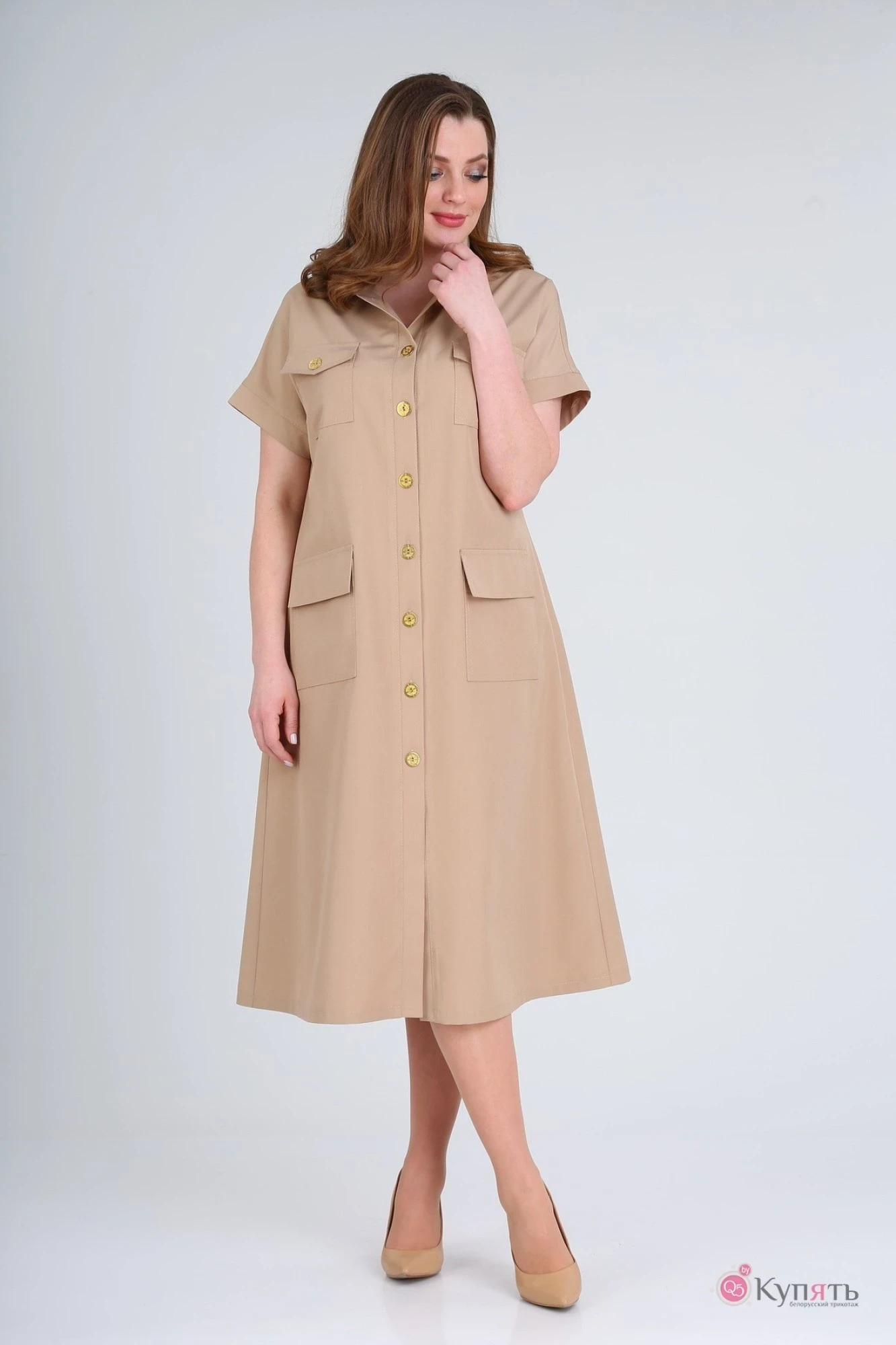 Платье в стиле сафари должно быть в гардеробе каждой модницы и не только. Это универсальный вариант на каждый день или особый случай. Изделие А-образного силуэта, слегка расширено к низу. По переду расположена центральная планка застежка на петли пуговицы. Рукав втачной на основе «кимоно», понизу с притачной манжетой. Воротник стойка. По передней части полочки в верхней и нижней части изделия выполнены нагрудные карманы с клапаном. Платье комплектуется съемным завязывающимся поясом из основной ткани.