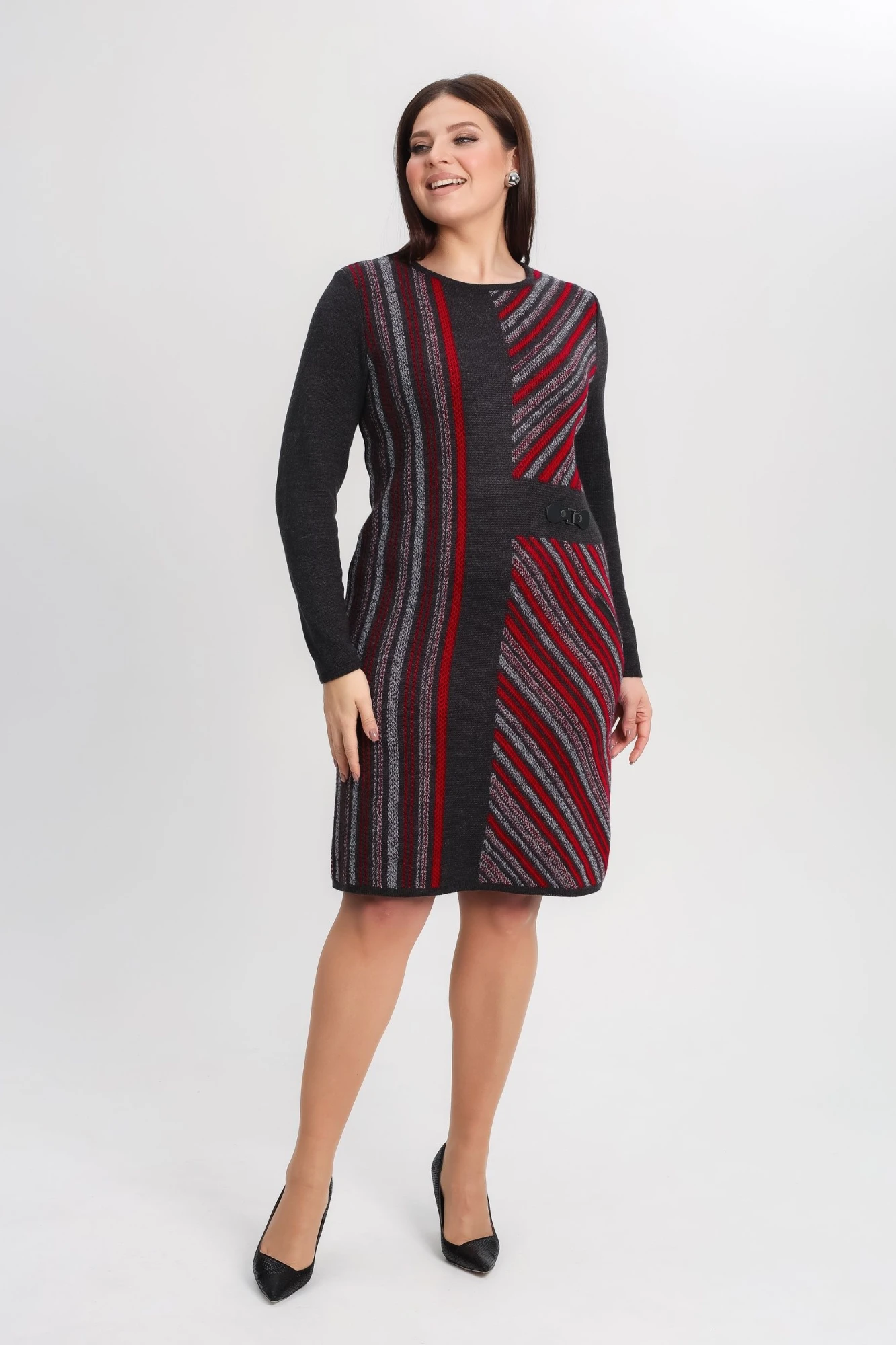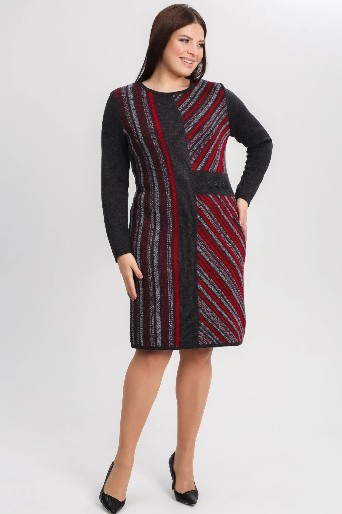 Женское вязаное платье с полуприлегающим силуэтом. В составе платья есть теплая и мягкая шерсть, поэтому идеально подходит даже для самых прохладных дней. Оно имеет длину до колена (длина миди), длинные рукава и прорезной карман, подходит на рост 164-170 см, что добавляет ему практичности. Идеально подойдет для создания повседневного образа. Оно подойдет женщинам любой комплекции, в том числе и обладательницам пышных форм. Изготовленное из высококачественной и практичной пряжи, это платье можно носить в любой ситуации, будь то прогулка по городу или работа в офисе. Оно подходит для женщин любого возраста, а также для высоких и невысоких девушек. Шерстяное платье поможет создать не только повседневное, но и праздничное настроение. Оно отлично сочетается с различными аксессуарами и обувью, позволяя создавать новые образы каждый день