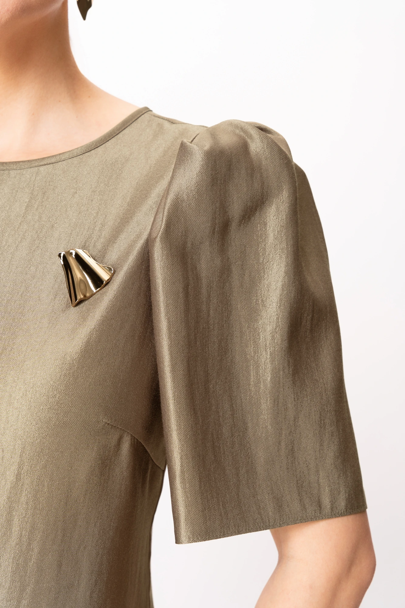 Элегантное женское платье, выполнено из плательной ткани с небольшим блеском.