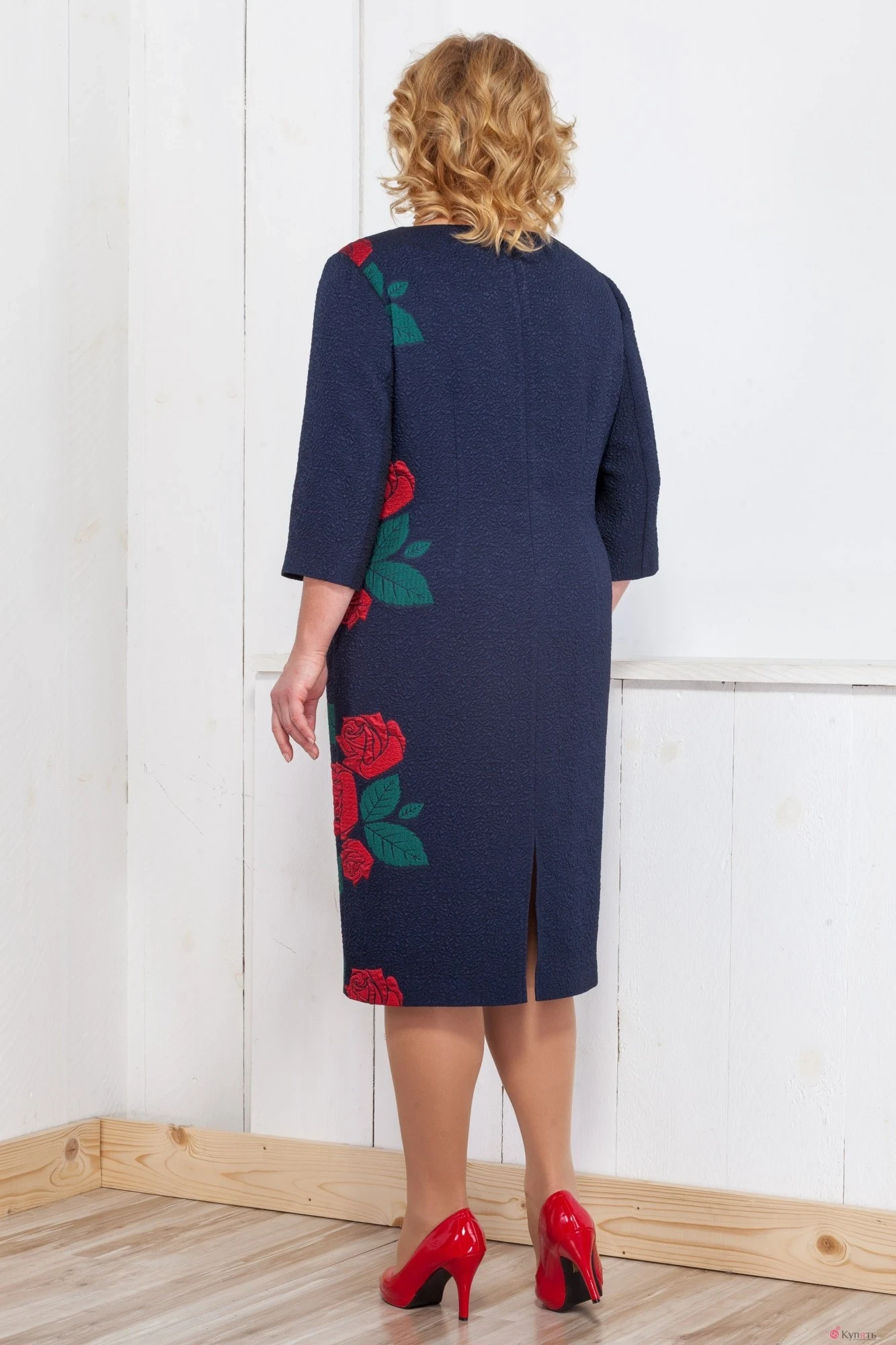 Элегантное женское платье из жаккардовой ткани .Ассимитрично расположенный рисунок выгодно подчеркивает фигуру.Платье полуприлегающего силуэта,горловина круглая.Спинка с центральным швом, застежка молния.Рукава втачные ¾.