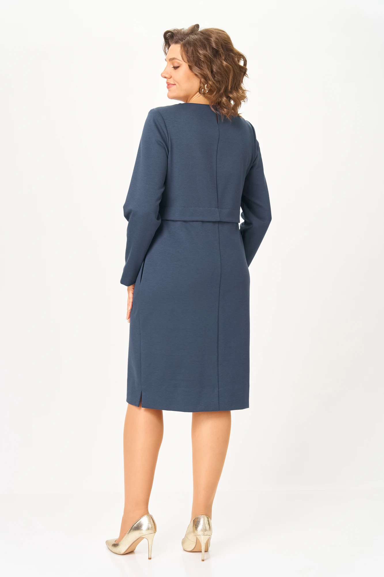 Платье полуприлигающего силуэта. По переду и спинке фигурный подрез на уровне талии.