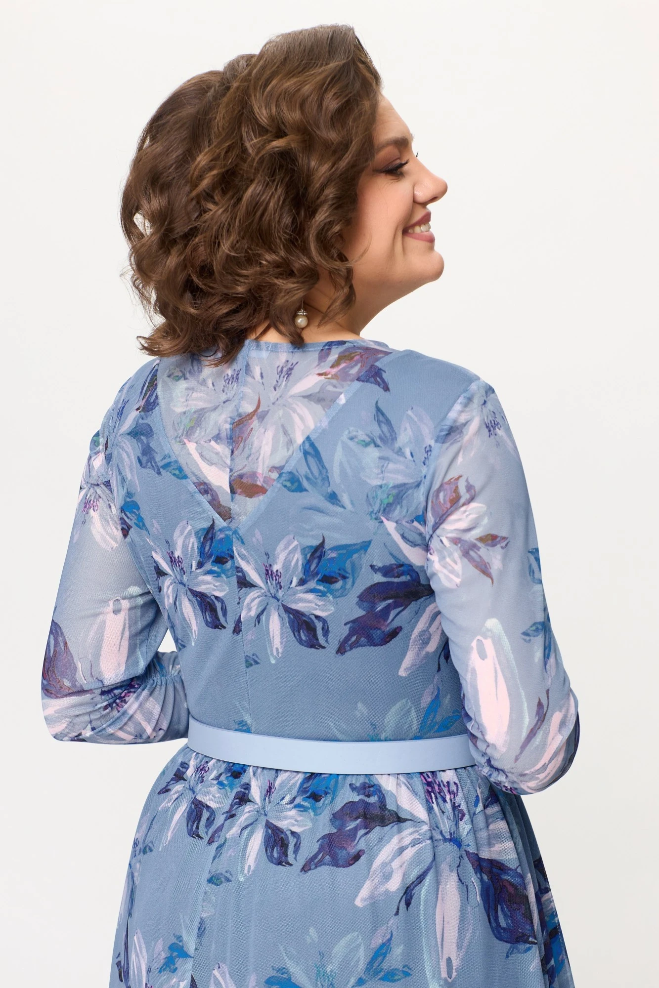 Платье отрезное по линии талии, юбка расширенная со сборкой по талии. Лиф прилегающего силуэта, по переду и спинке, отрезные «V» обрасные кокетки, горловина круглая. Рукава втачные длина ¾, со сборкой по шву.