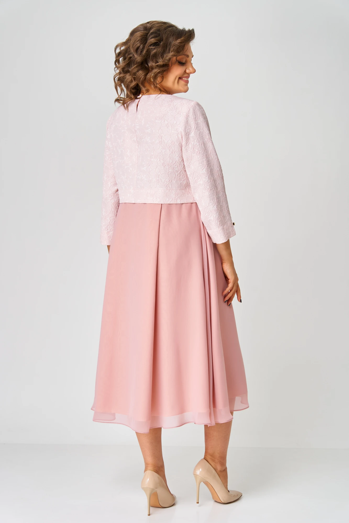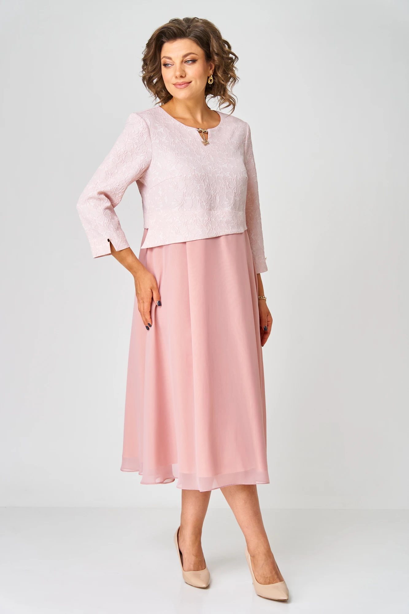 Элегантное женское платье, выполнено из жаккарда и шифона.