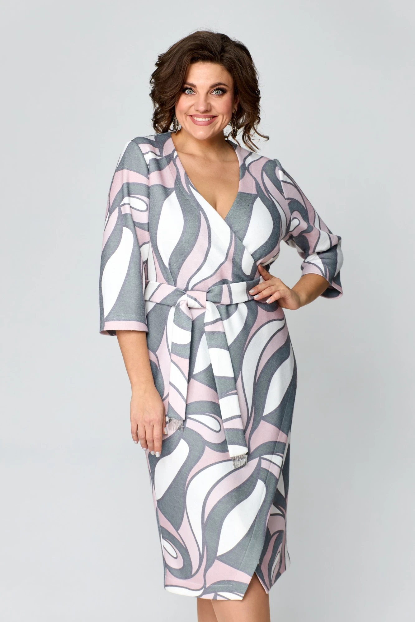 Данное платье из теплого трикотажного полотна с оригинальным принтом. Ткань приятная к телу хорошо тянется. Едва ощутимое на теле, оно идеально сочетают в себе комфорт, тепло и женственность. Платье полуприлегающего силуэта длиной миди. V-образная горловина, созданная за счёт запаха, эффектно подчёркивает шею и слегка удлиняет её, а перечёркнутая по диагонали фигура визуально делается стройнее и выше, плечи сужаются, а талия становится отчётливее. Рукав одношовный длиной 3/4.Центральный шов спинки и рельефные линии по переду формируют приталенный силуэт и обеспечивают идеальную посадку изделия по фигуре, деликатно повторяя естественные изгибы тела. Талия эффектно подчёркнута съемным поясом.