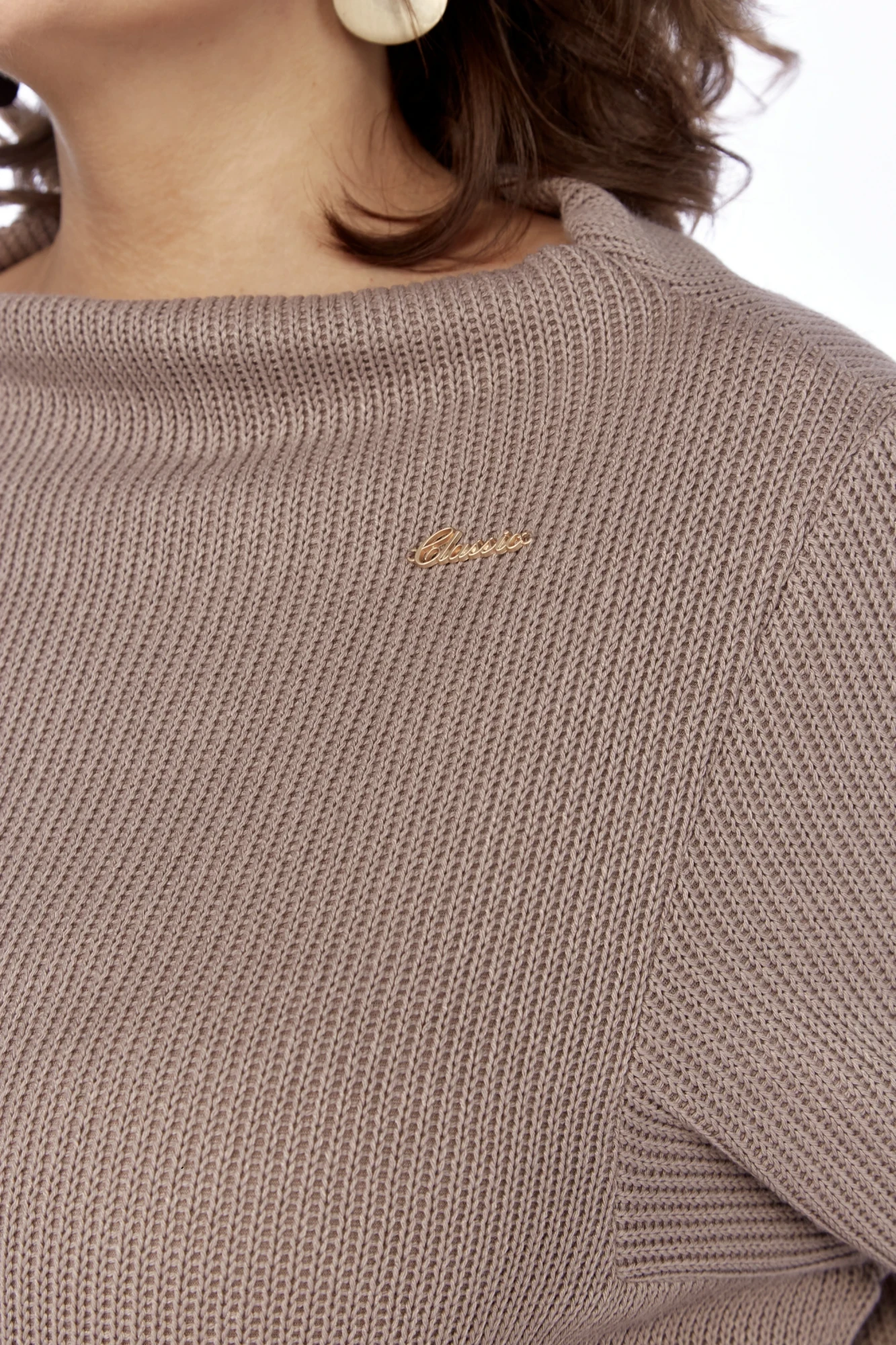Платье женское, полуприлегающего силуэта, по спинке средний шов, заканчивающийся внизу разрезом. Пройма квадратная, рукав втачно одношовный, зауженный к низу. Воротник- цельнокроенная стойка с расширенной горловиной. В качестве отделки используется фурнитура и съемный пояс.