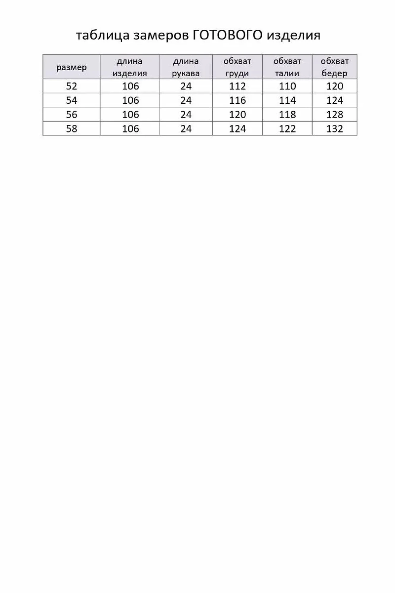 Платье сшито качественно из приятного шифона очень нежной расцветки. Идёт в размер. На параметры ОГ 108 и ОБ 114 подошёл 54 размер. Сидит свободно, нигде не облегает, достаточно просторный рукав. Подошло на мой маленький рост 154, вытачки на месте. Спасибо фирме- производителю и магазину за доставленную радость!