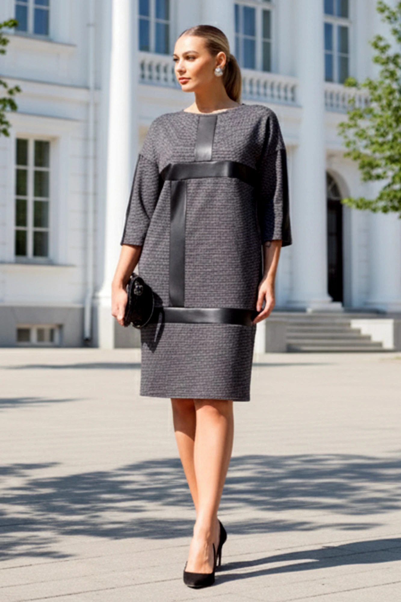 Забудьте о компромиссах между стилем и комфортом! Это платье прямого силуэта со спущенной линией плеча – идеальный выбор для современной женщины. Свободный крой дарит ощущение легкости, а декоративные вставки визуально стройнят фигуру, создавая элегантный силуэт. И вишенка на торте – практичные карманы в боковых швах! Больше не нужно думать, куда положить телефон или ключи. Просто наденьте это платье и наслаждайтесь каждым моментом!"