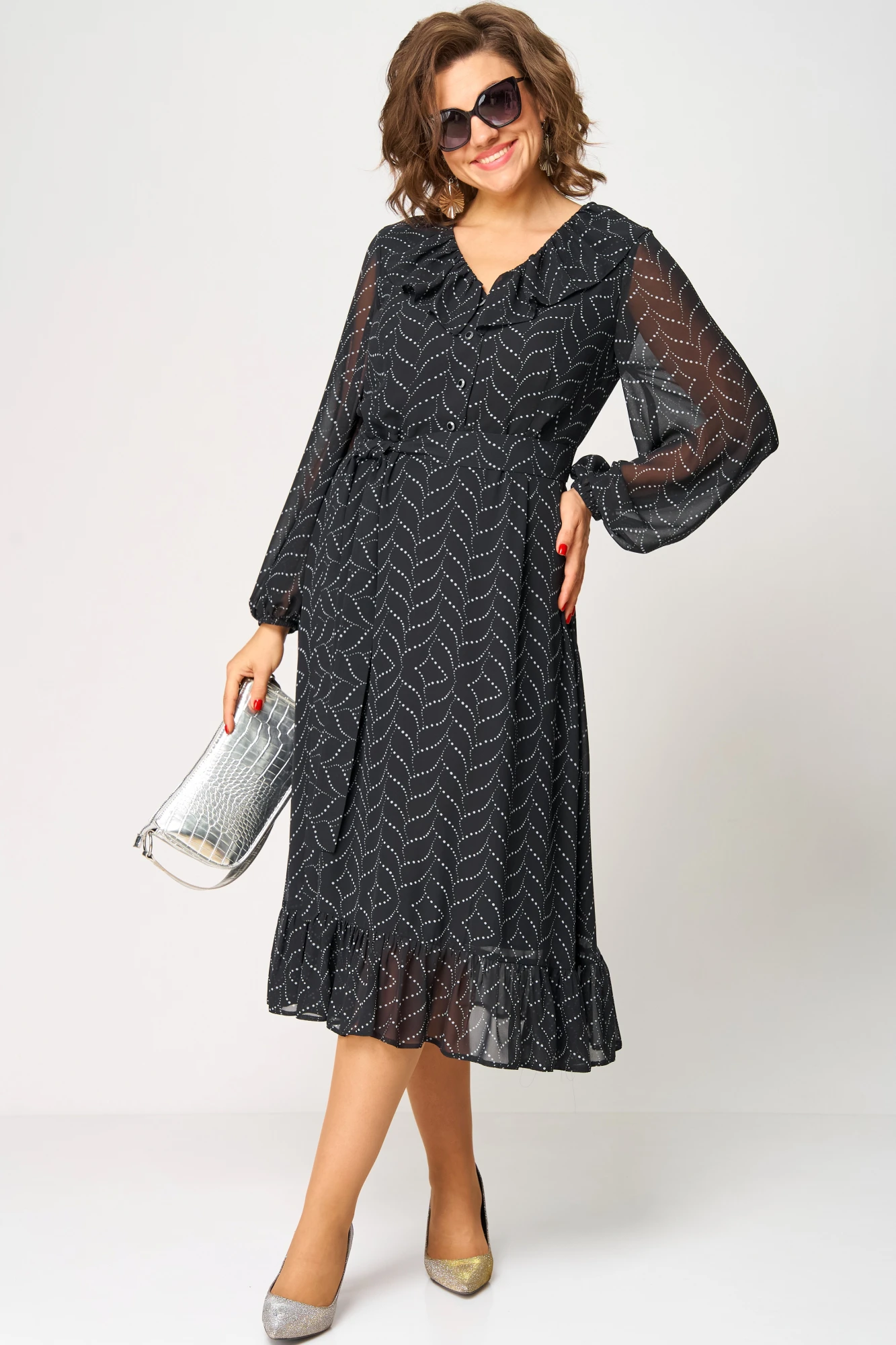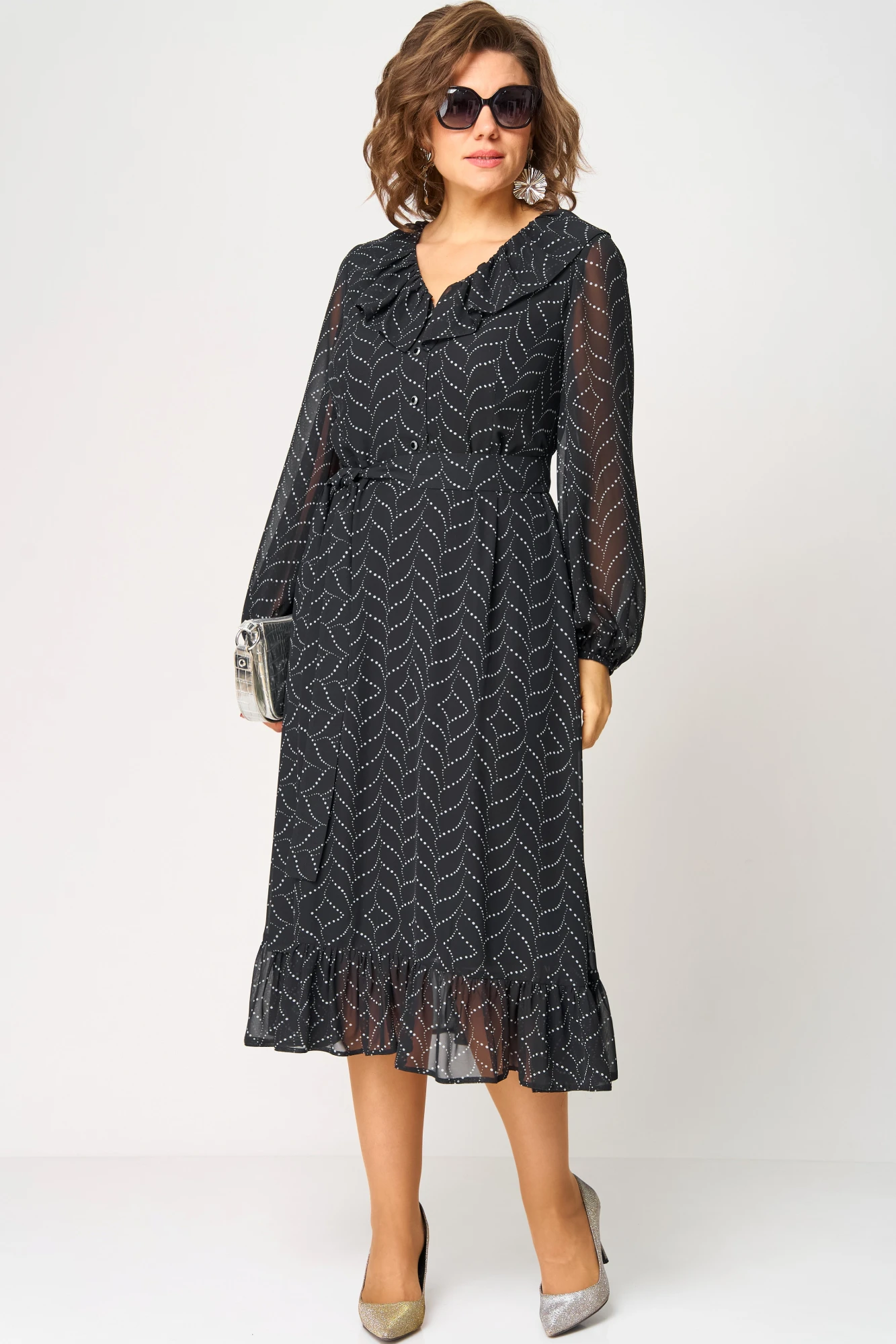 Платье женское нарядно-повседневное полуприлегающего силуэта расширенное к низу на трикогтажной подкладке. Выполнено из креп-шифон с анималистичным принтом. Платье отрезное по талии, по низу юбки волан со сборкой. Вырез горловины V-образный с притачной рюшей, обработан обтачкой. Рукав втачной по низу на резинке. Декором платья служит съемный пояс из основной ткани.