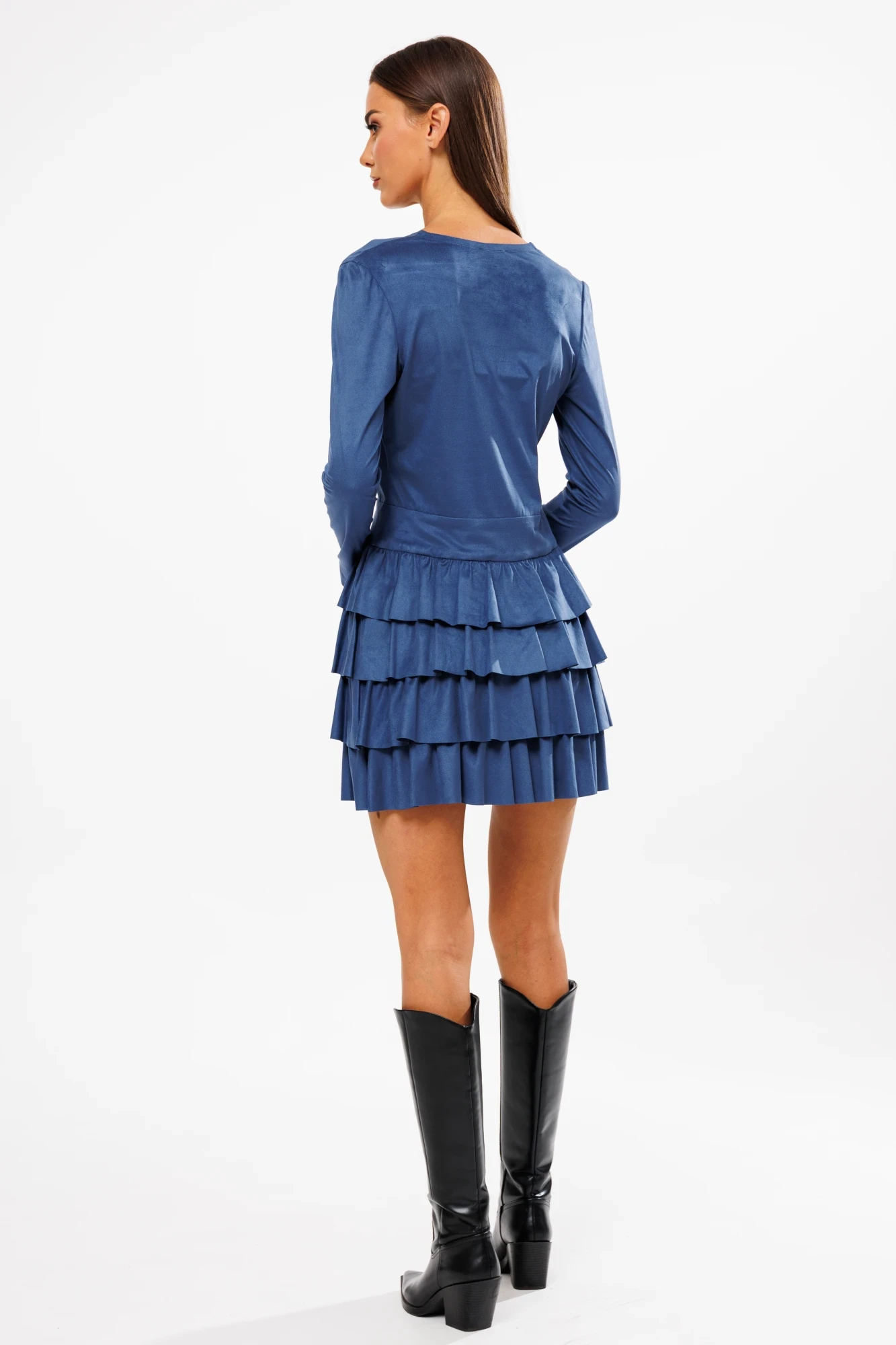 Нежное, романтичное и женственное… Так в нескольких словах можно охарактеризовать платье с воланами - один из главных трендов этого сезона. Оно как нельзя лучше подойдет для праздничных выходов. Платье полуприлегающего силуэта, лиф с запахом и наклонными складками от линии талии, отрезной пояс и нижняя часть - конические воланы. Рукав втачной. Длина платья около 87 см. Длина рукава около 60 см.