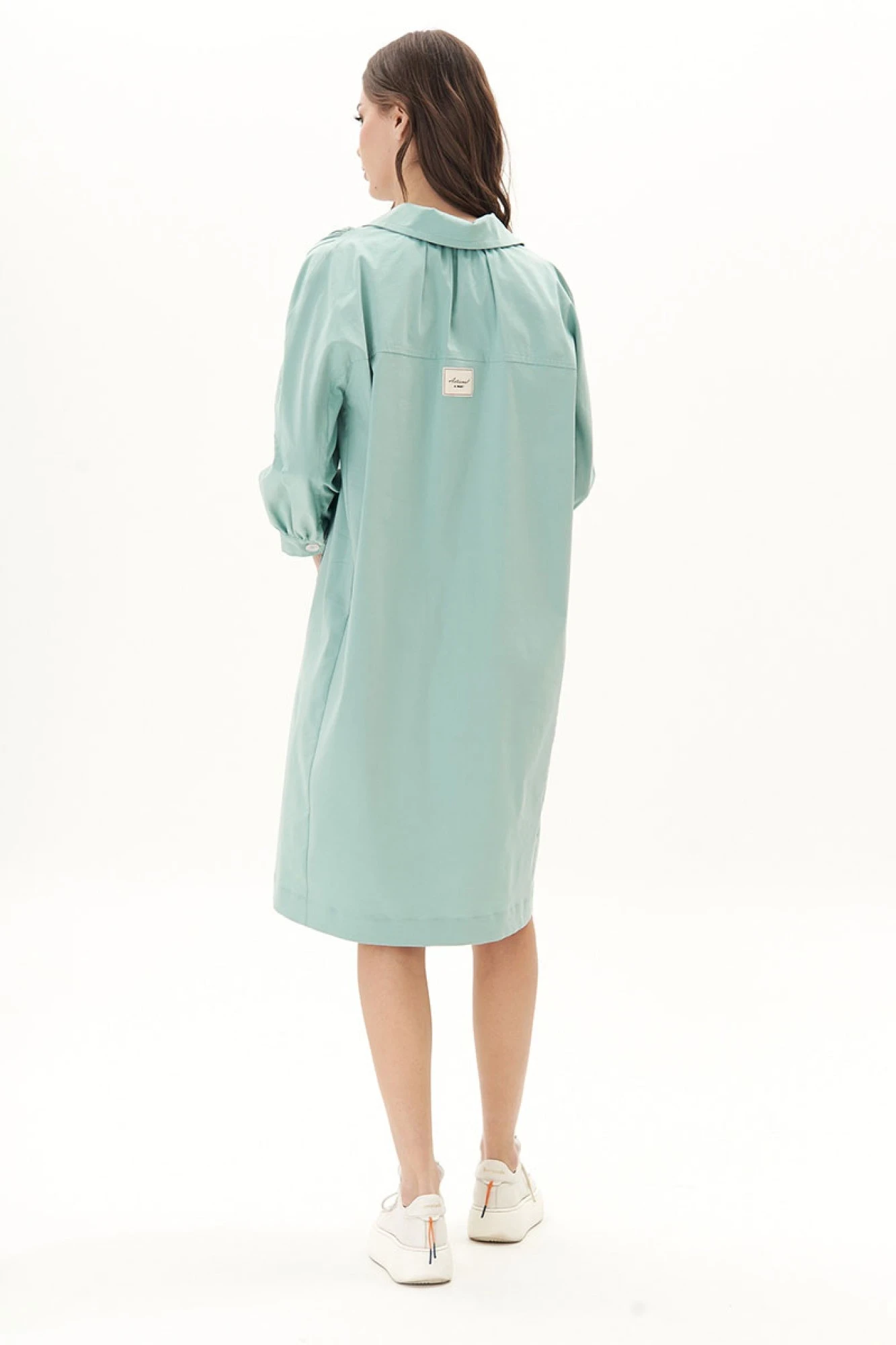 Простой лаконичный силуэт, сложный комбинированный покрой, стояче отложной воротник. Полочка с отрезными бочками, карманами в рельефе, сборкой по плечевому шву.