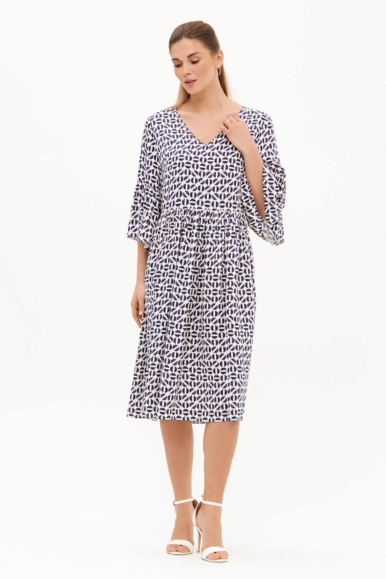 Платье FRIDAY by NELVA 51725 молочно-синий принт