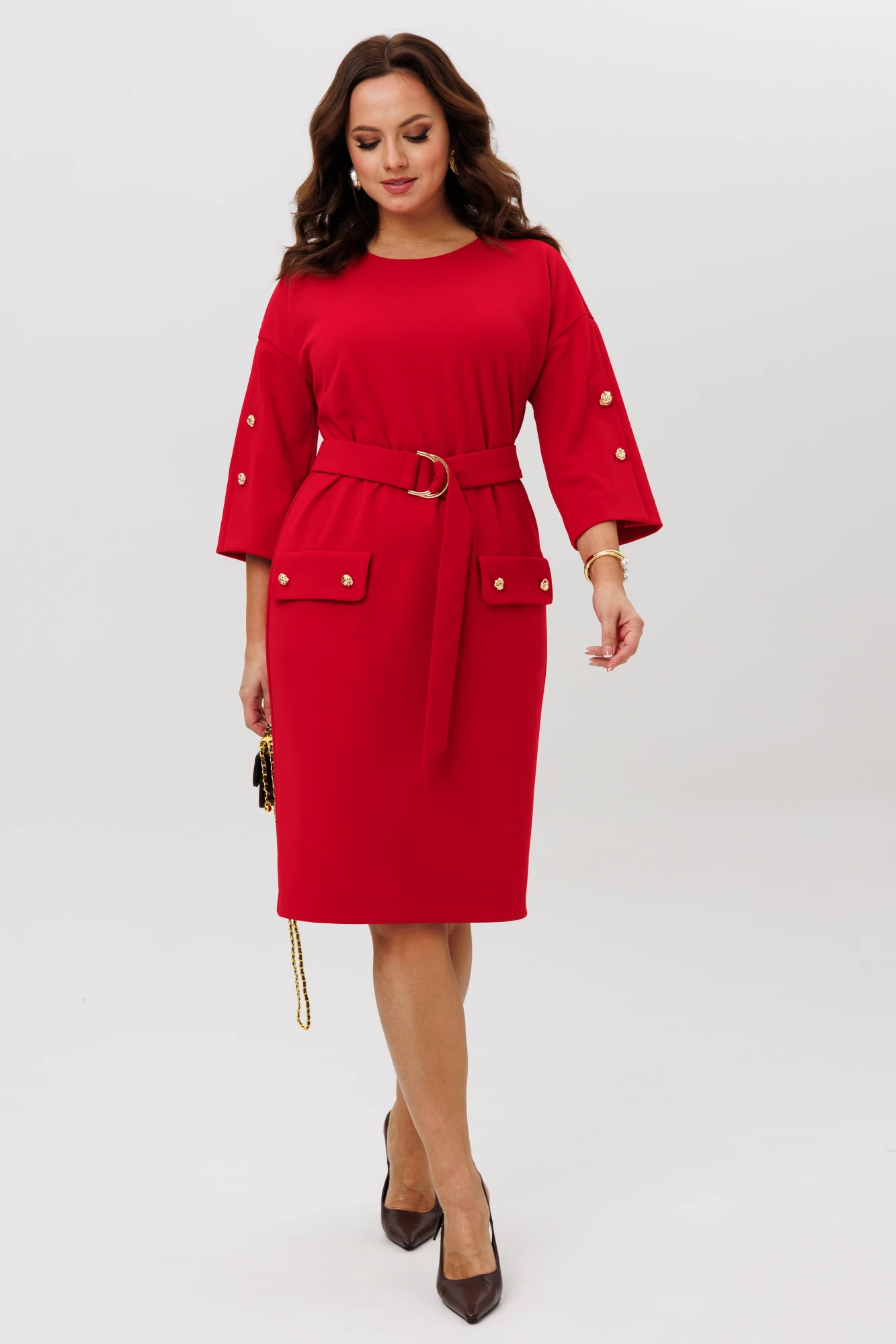 Нарядное платье из трикотажного крепа с мелким блеском станет прекрасным выбором для вечерних мероприятий,корпоративных встреч и праздничных торжеств.Особенностью этого стильного платья является его прямая модель ,которая подчеркивает женстсвенность и элегантность.Платье подходит для полных женщин. Платье прямого силуэта с нагрудными вытачками.Рукав спущенный с декоративной шлицей и пуговицами. Декором платья являются клапаны и пуговицы.Пояс эффектно подчеркивает талию.