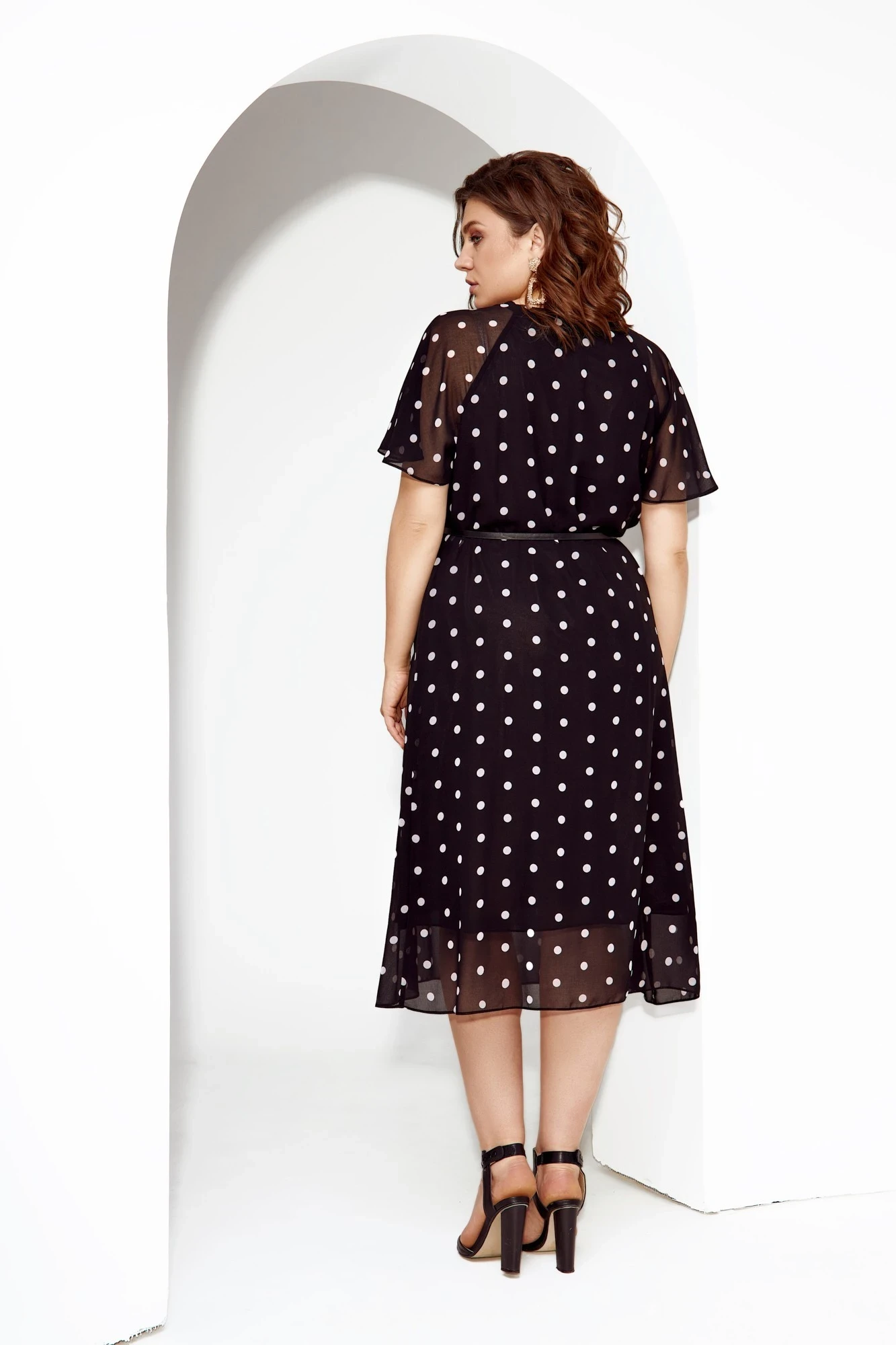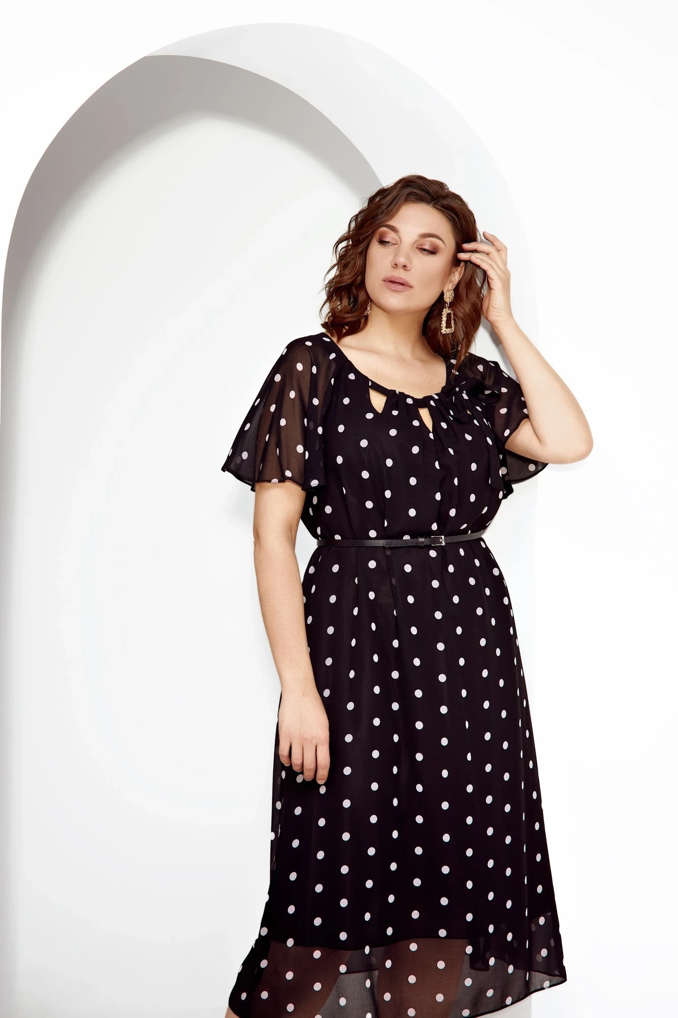 Платье женское из легкой шифоновой ткани на трикотажной подкладке. Платье А- силуэта. Рукава реглан, по горловине декоративная завязка из основной ткани. В комплекте съемный пояс.