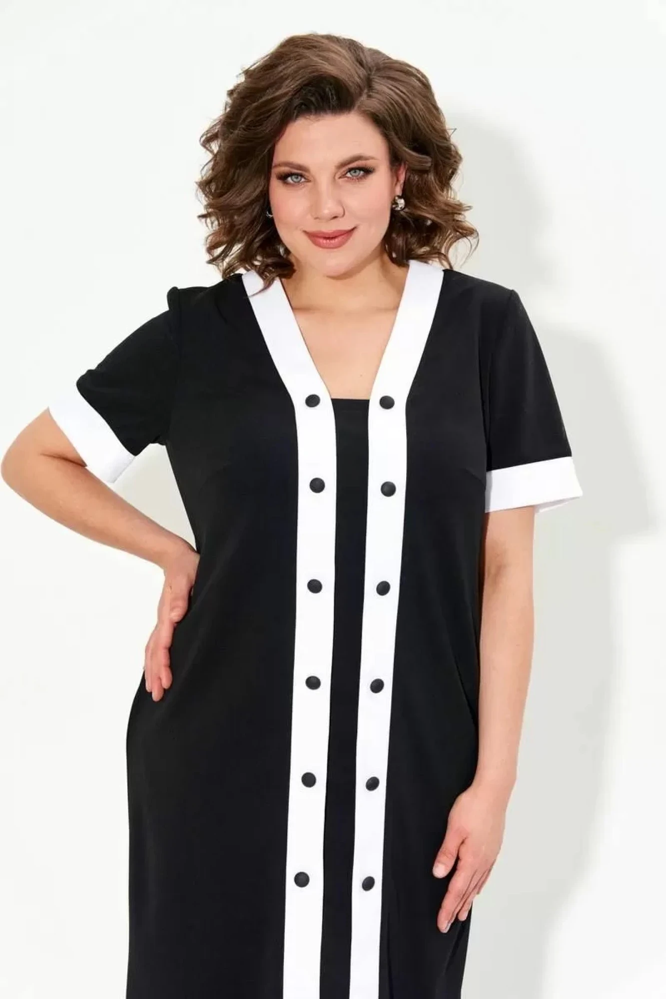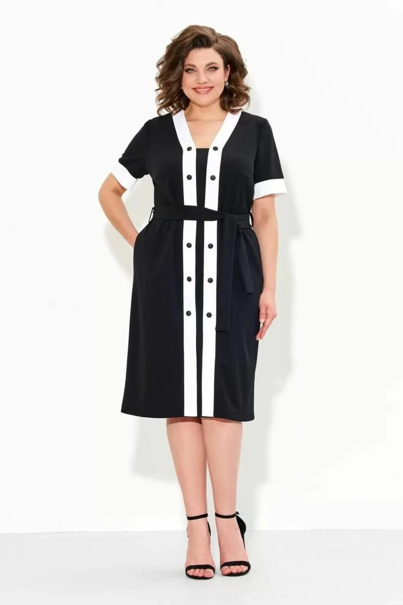 Платье женское A-силуэта в стиле "шанель" без подкладки со втачными рукавами и V-образным вырезом горловины. По переду "маленького черного платья" декоративная планка из той же ткани белого цвета и функциональные карманы в боковых швах. В комплекте съемный пояс. Платье прошло тестовую стирку при t 30 градусов : не линяет.
