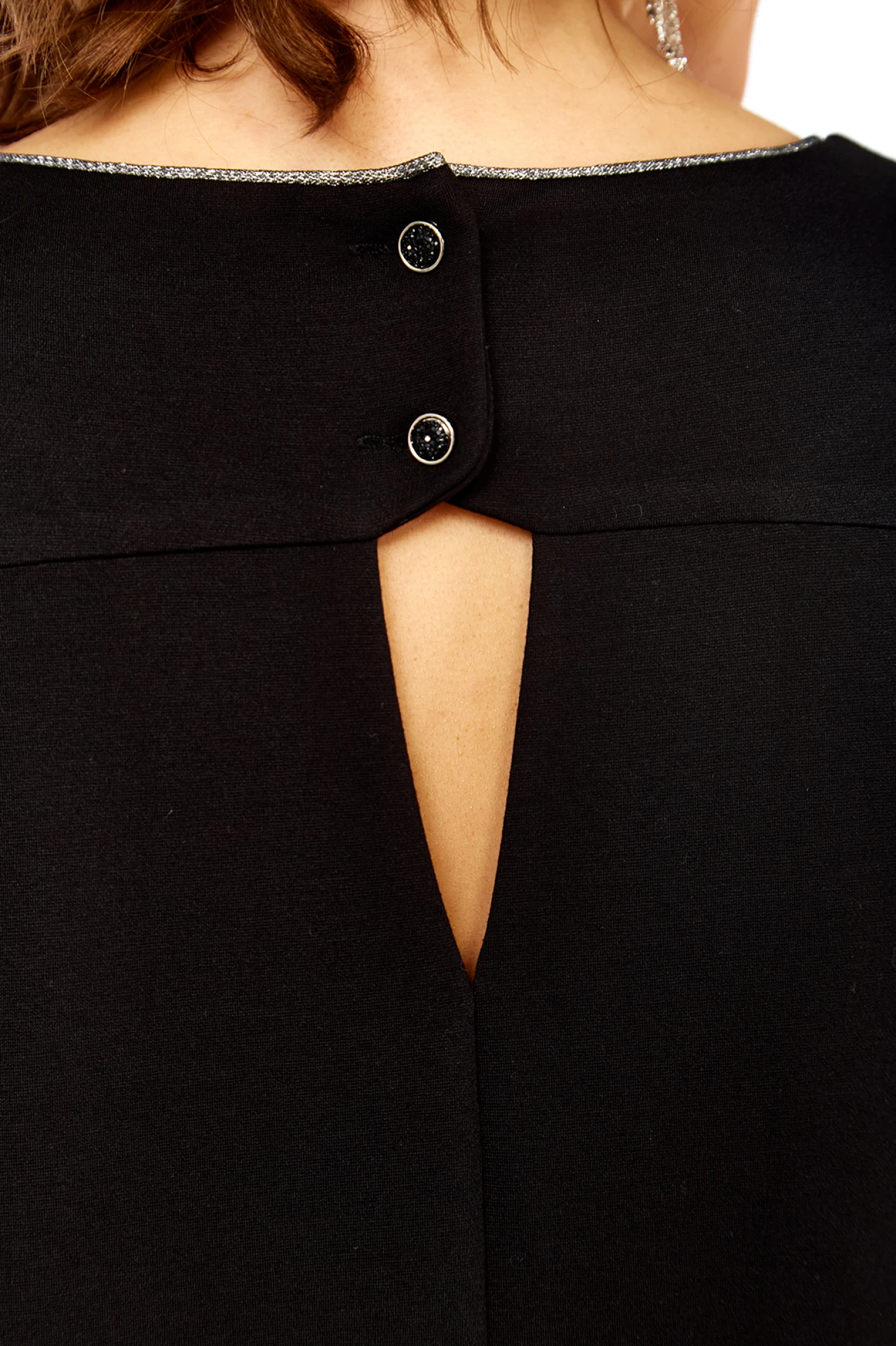 Платье женское нарядное, изготовлено из трикотажного полотна. Горловина круглой формы с кантом. На полочке дизайнерская вышивка. Спинка со средним швом и декоративной застежкой вверху. Рукава спущенные с кантом по низу.