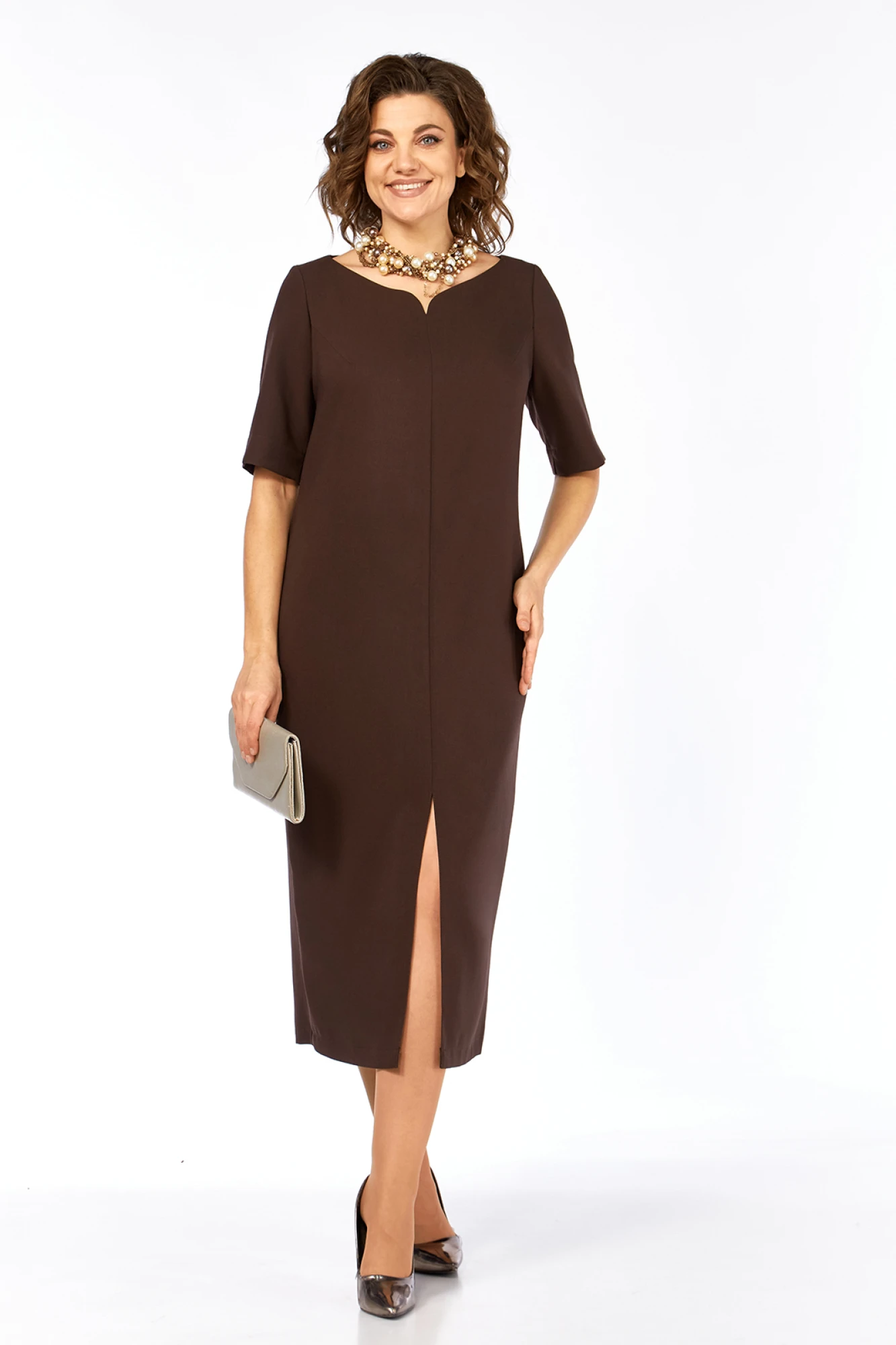 Платье женское , полуприлегающего силуэта, выполнено из плательно-костюмной ткани. Горловина фигурной формы. Перед с нагрудными вытачками и средним швом в котором обработан разрез. Спинка со средним швом. Рукава втачные, одношовные с небольшим разрезом по шву.