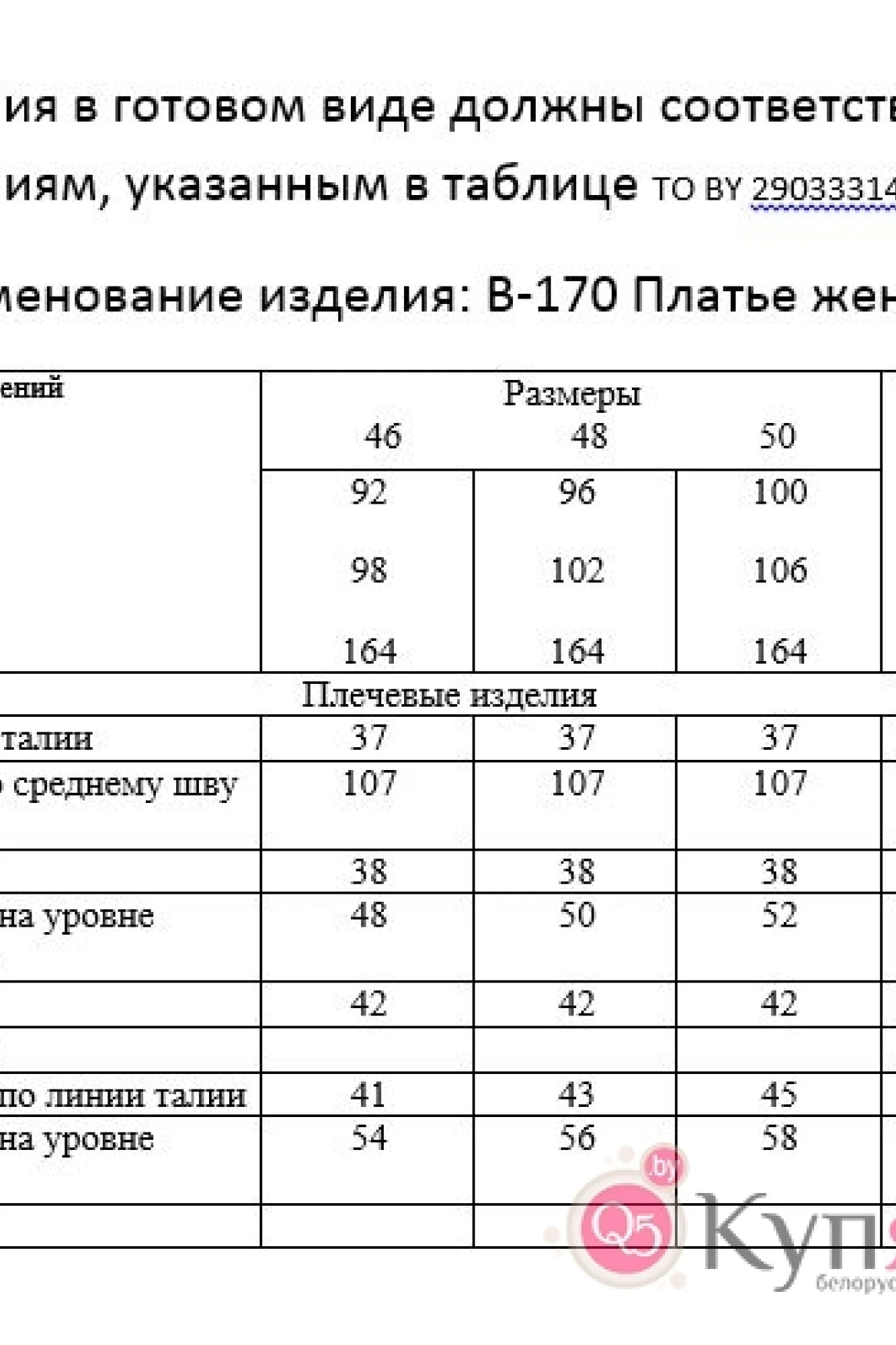 Таблица размеров