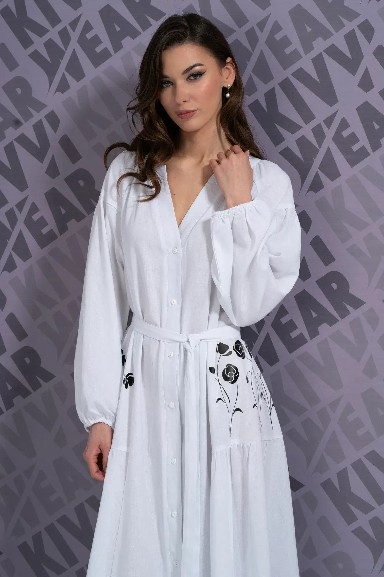 Это удлиненное платье создано из натурального и экологичного материала - льна, который известен своей прочностью и долговечностью. Благодаря добавлению вискозы, ткань приобретает легкий блеск и становится более струящейся, что придает платью особый шарм и изысканность.