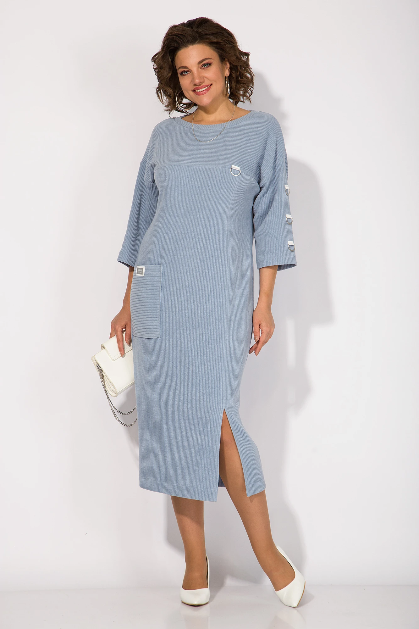 Эффектное платье выполнено из трикотажного штрукса, создано для тех, кто ценит комфорт в повседневной жизни. Модель полуприталенного силуэта со спущенной линией плеча. Рукав длиной3/4-ти украшает ряд декоративных полуколец. Вырез горловины округлый, на мягкой планке. Полочка с отрезной кокеткой и ассиметричным рельефом, переходящим в разрез на свободу движения. Ассиметричный накладной карман украшает декоративная нашивка.
