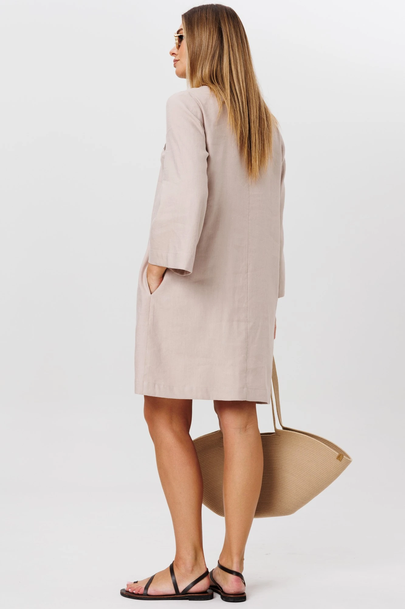 "Свободное льняное платье Ma Сhérie длиной по колено.