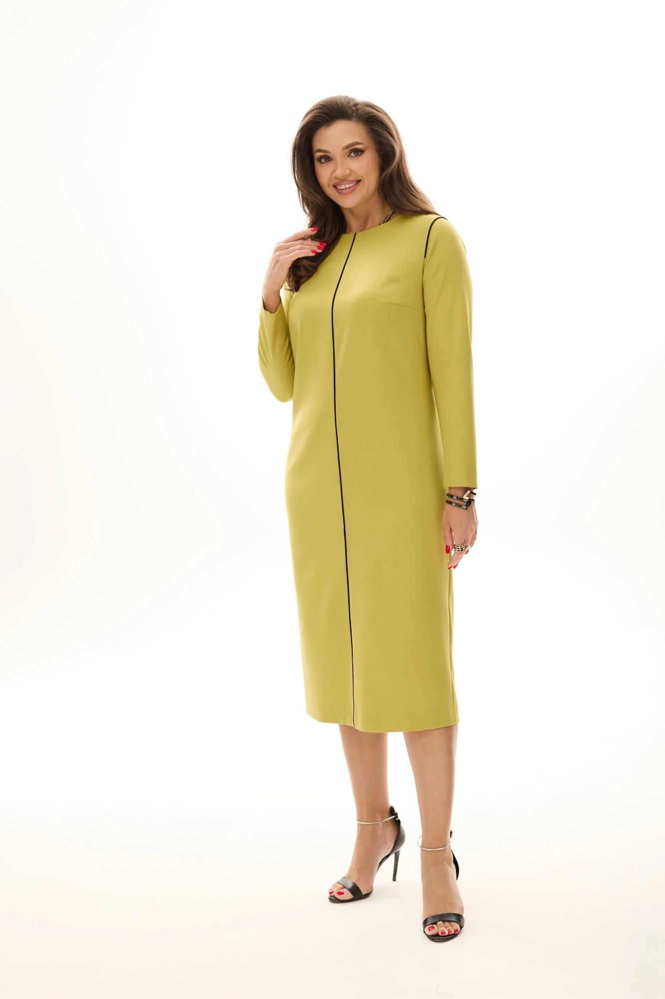 Платье полуприлегающего силуэта, зауженное книзу. По середине переда вставлен декоративный кант. По спинке средний шов с застежкой на молнию и шлицей. Рукав втачной, заужен книзу. По пройме вставлен декоративный кант. В комплекте пояс с отделкой кантом.