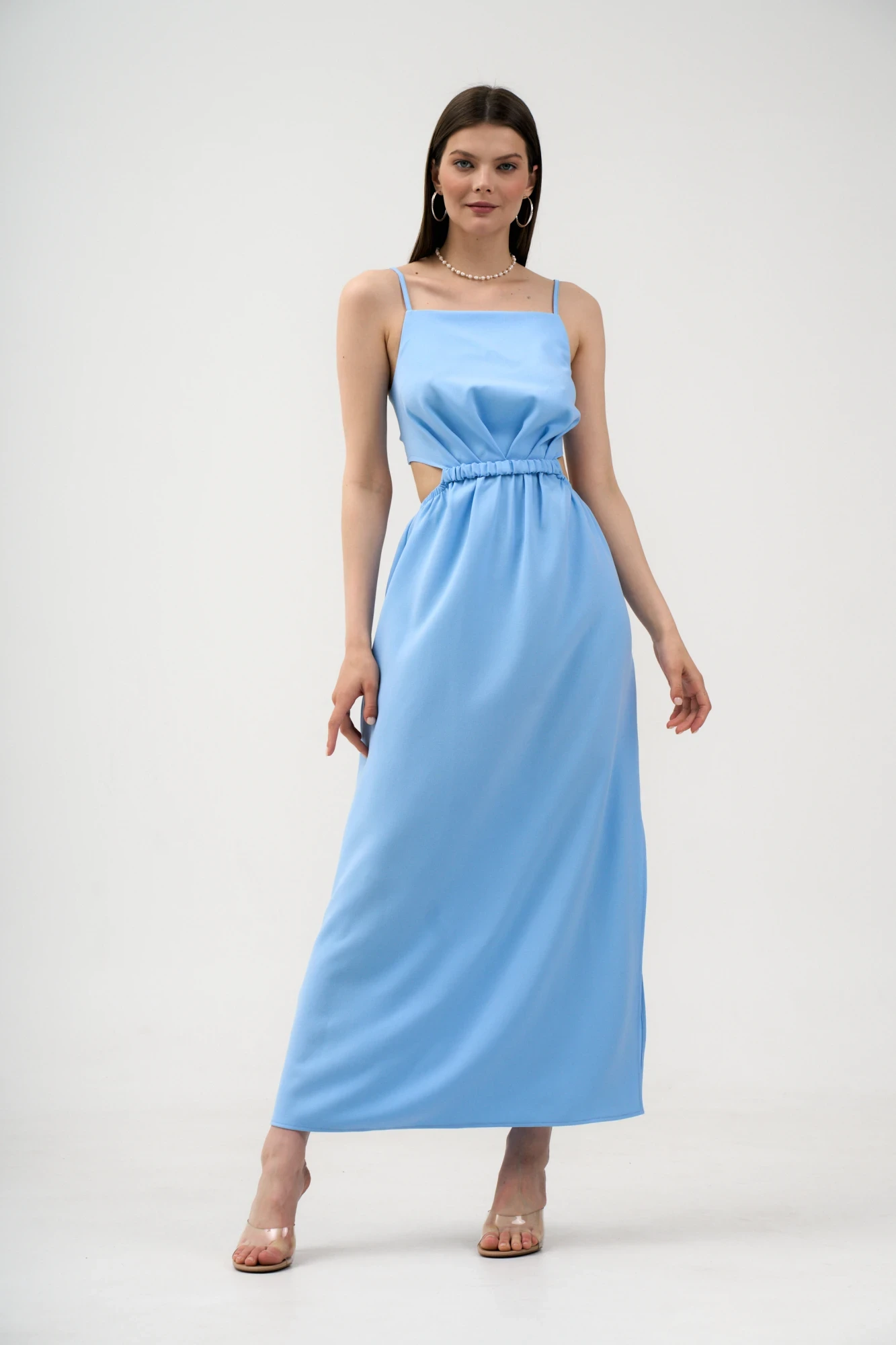 Платье длинное с разрезом по боковому шву, на бретелях с регулировкой,