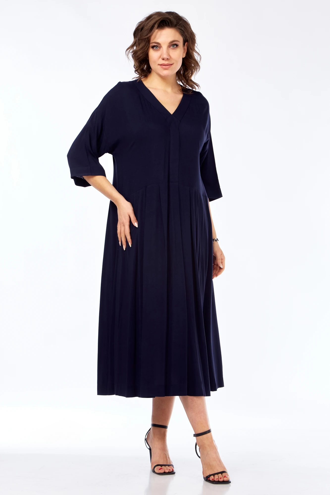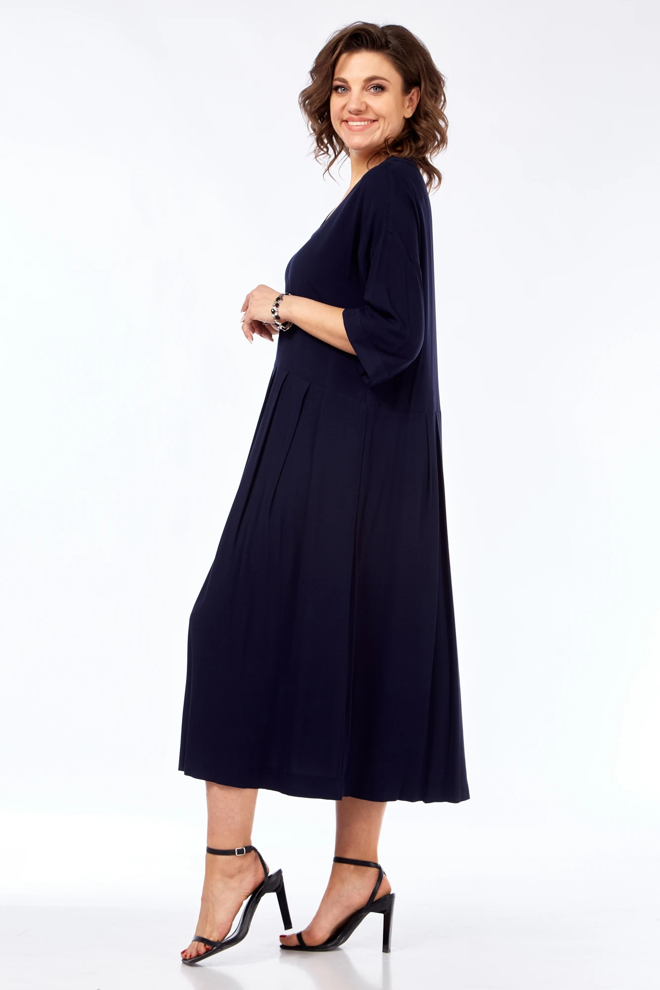 Платье-оверсайз, с трезной талией, юбка со складками, карманами в боковых швах, рукав 3/4.