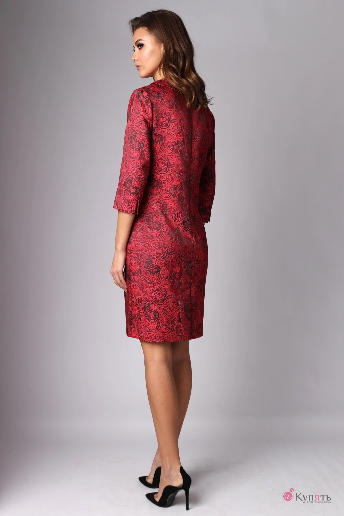 Платье полуприлегающего силуэта.По спинке застежка на потайную молнию. Рукав втачной 3/4. По низу рукава разрез.Изделие выполнено из жаккардовой ткани