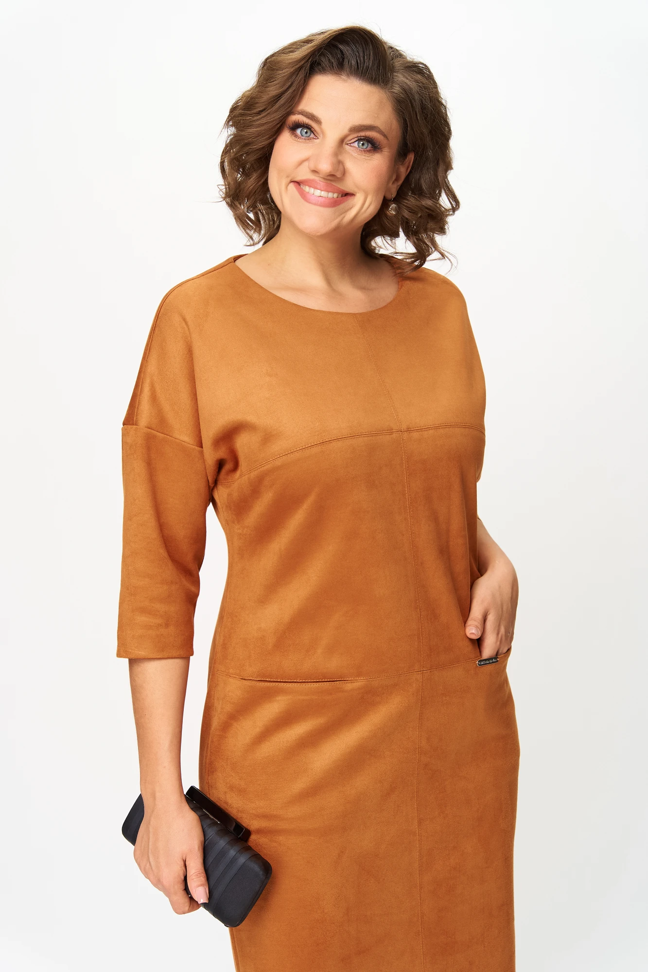 Элегантное платье прямого кроя из мягкого трикотажа с имитацией замши, приятной к телу. Приспущенный рукав 3/4, аккуратные декоративные швы и длина до колена визуально стройнят, а в передних швах спрятаны удобные карманы.