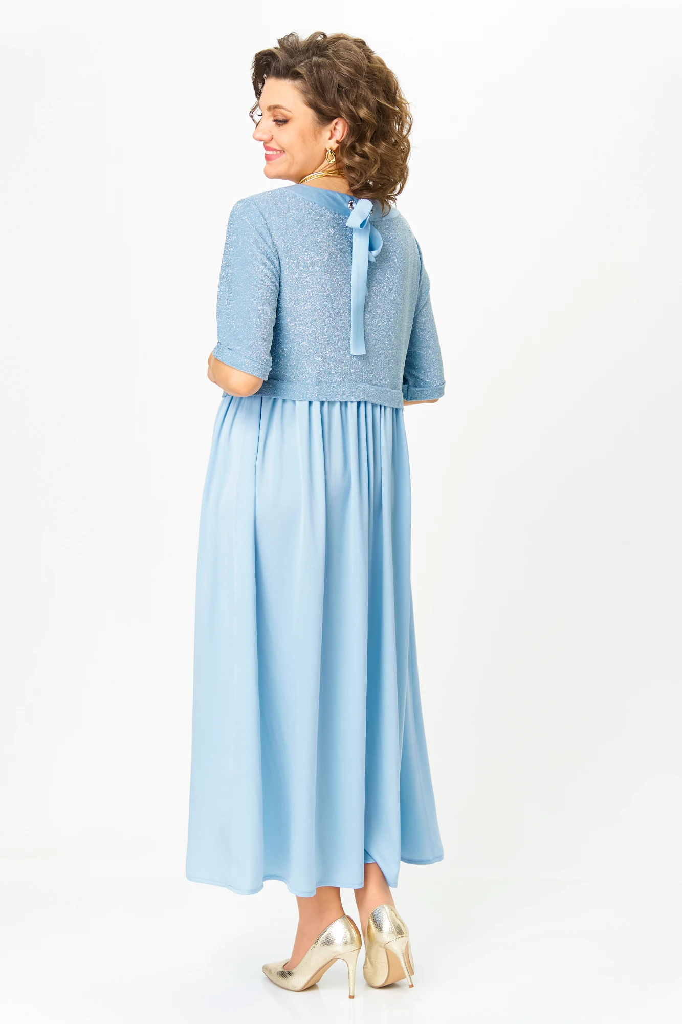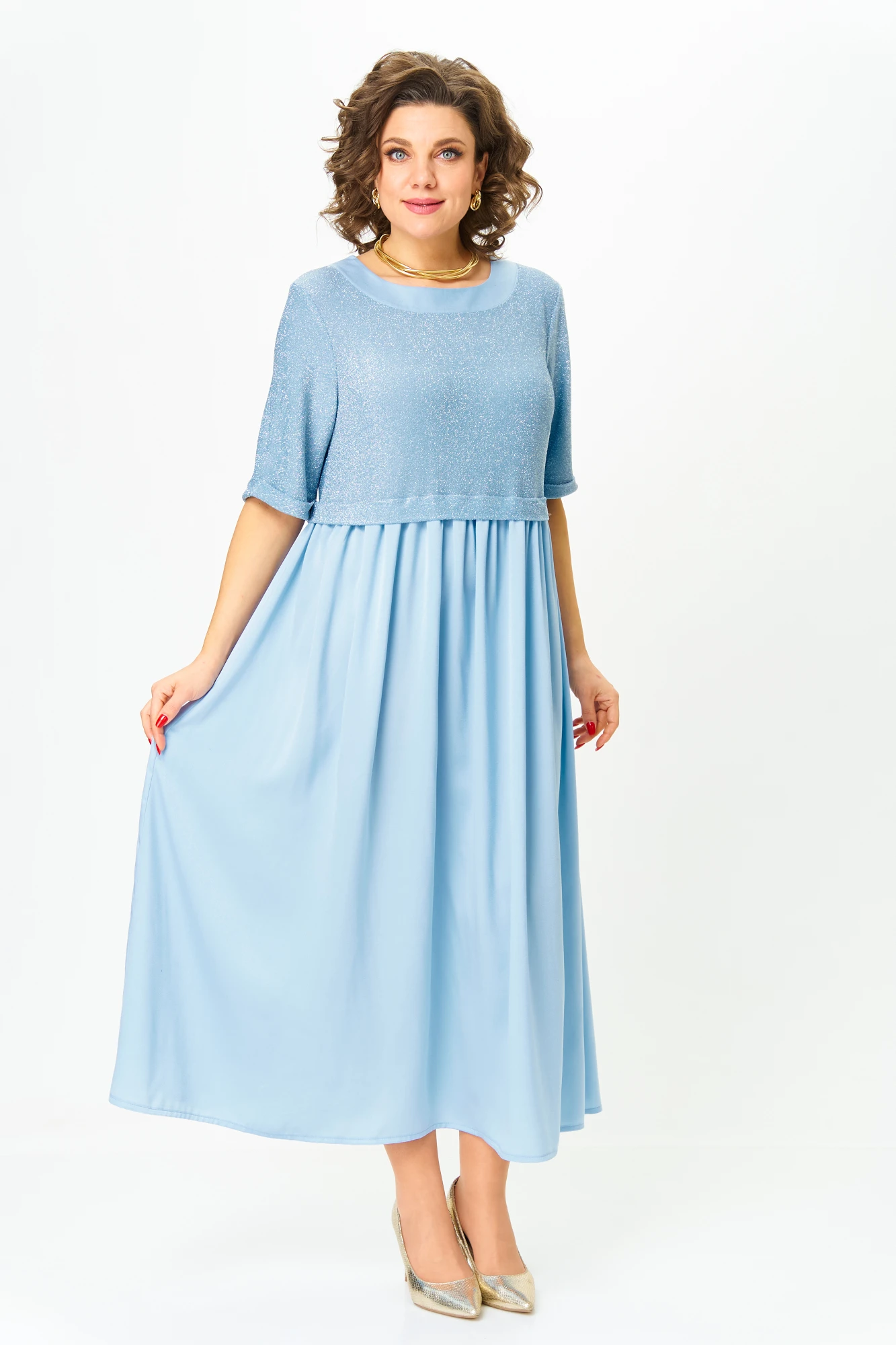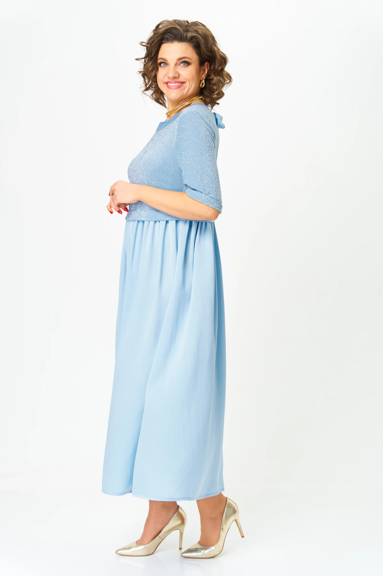 Универсальное и комфортное платье на любой случай вашей жизни. Верхняя часть платья выполнена из фактурного трикотажа с добавлением люрекса; нижняя — из струящейся легкой вискозной ткани с эффектом «атласа». Изделие прекрасно вольется в ваш гардероб. Верх платья с завышенной талией и округлой горловиной с отделочной широкой планкой, спинка с центральным швом и завязкой по горловине. Втачной рукав длиной 3/4. Низ платья — длинная свободная летящая юбка со сборкой из-под верхней части платья, которая обеспечит легкость движений и комфорт. В боковых швах имеет функциональные карманы. Данный фасон дает возможность создания стильного образа как для повседневной носки, так и для праздника. Эта одежда будет уместна как осенью и зимой, так и весной.