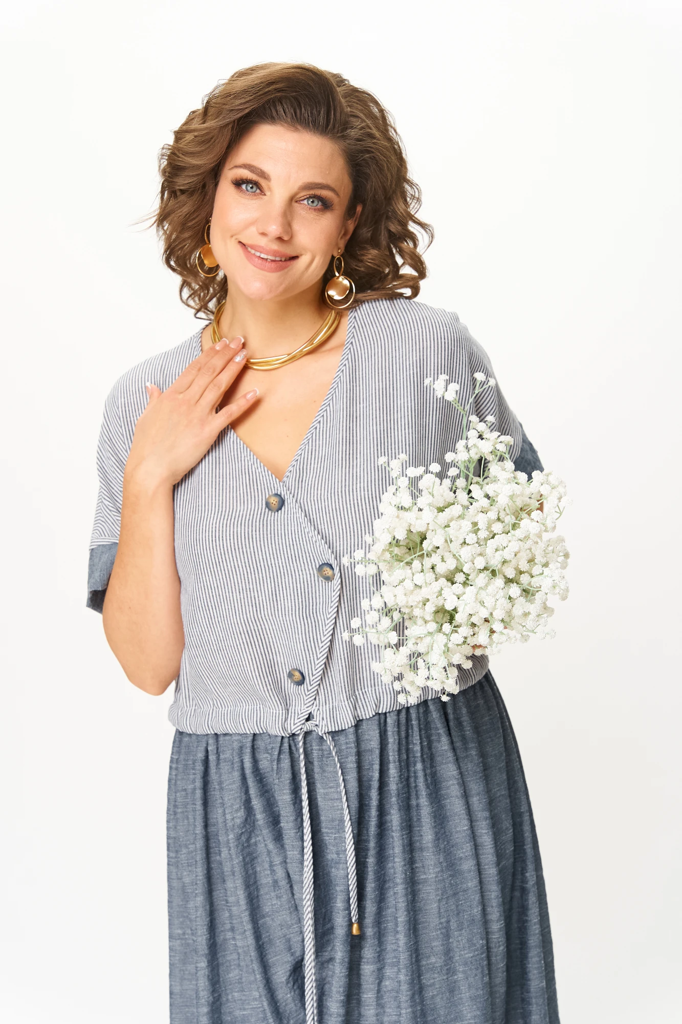 Универсальное легкое женское платье - в стиле бохо, прекрасно подойдет для летних прогулок .Платье отрезное по линии талии на сборке. Плечо спущенное с притачной манжетой по низу , по переду лиф с небольшим ассиметричным запахом тремя пуговицами и У-образным вырезом горловины . По низу отрезного верха кулиса стягивающаяся декоративной шнуровкой