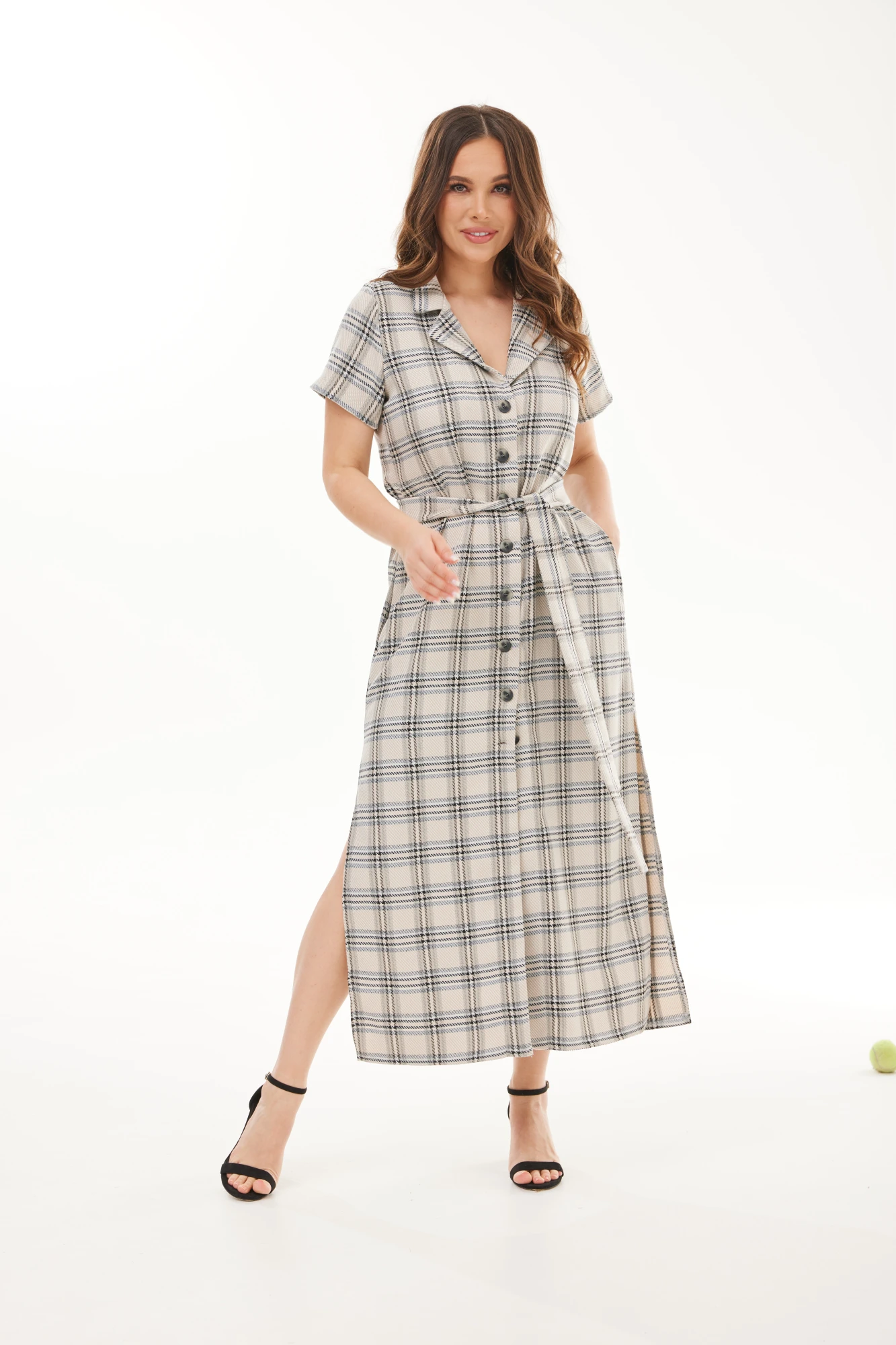 Удобное Платье из качественной приятной мягкой ткани подойдёт как для офиса, так и для повседневного отдыха.Платье свободного кроя с разрезами в боковых швах с отложным воротником лацканами на пуговицах.