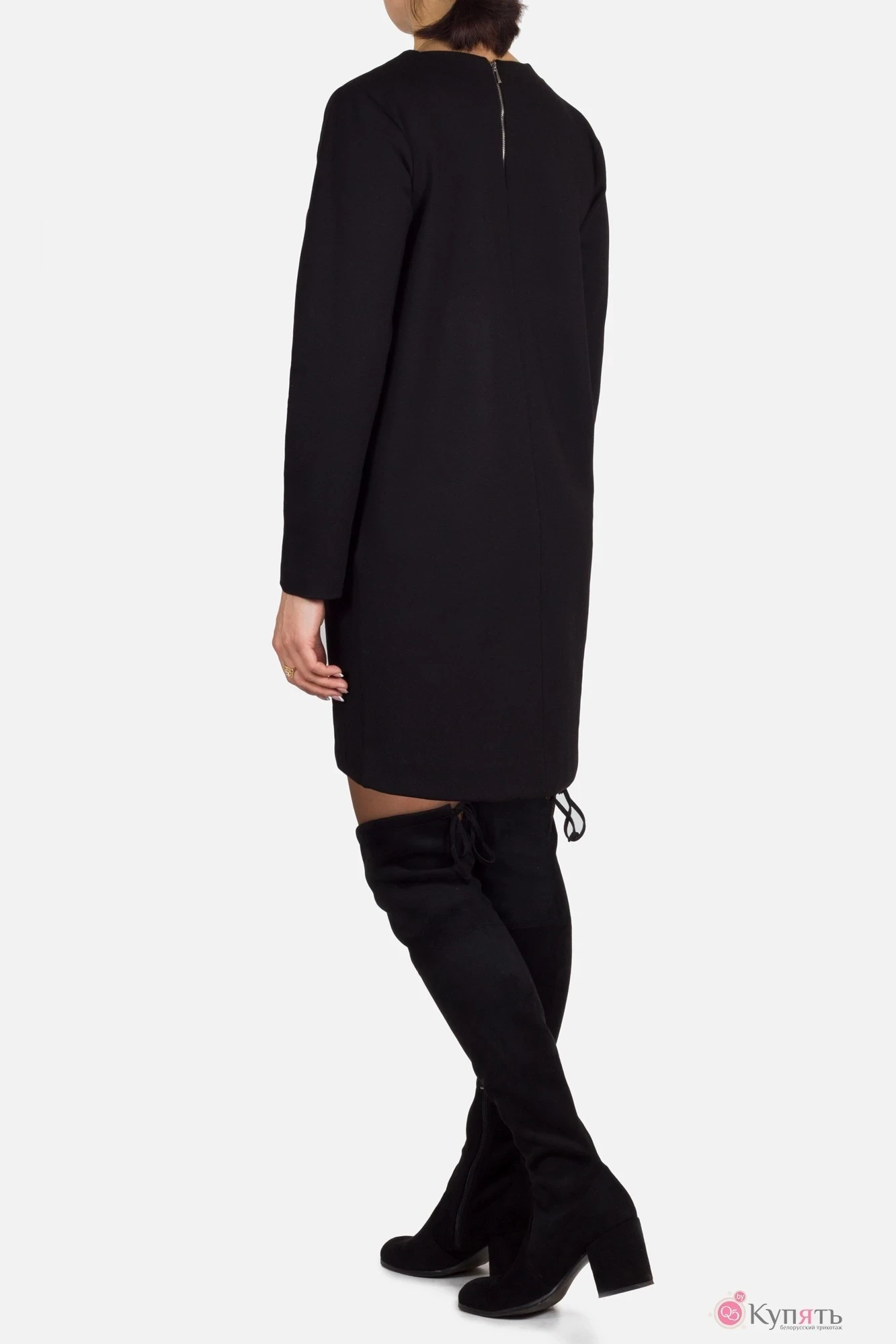 Классическое удобное платье из плотного высококачественного трикотажа свободного кроя с длинным рукавом. .По переду с удобными карманами и декоративными вставками «серебро». Спинка со средним швом, вверху обработана декоративной молнией «серебро». Низ ассиметричный. С 52р платье прикрывает колени.