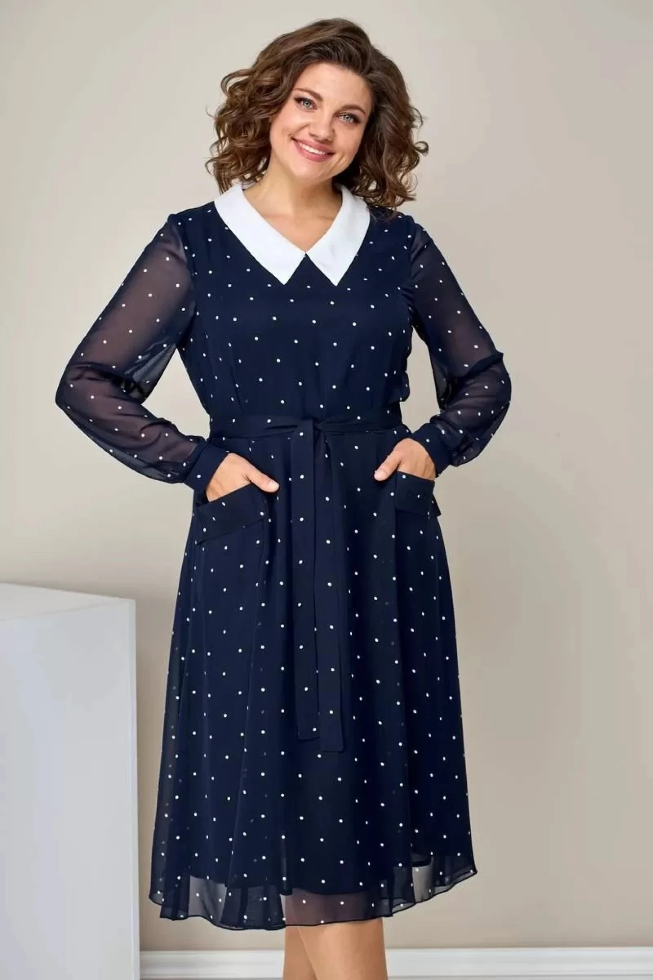 Шифоновое платье Moda-Versal П-2399 темно-синий горох