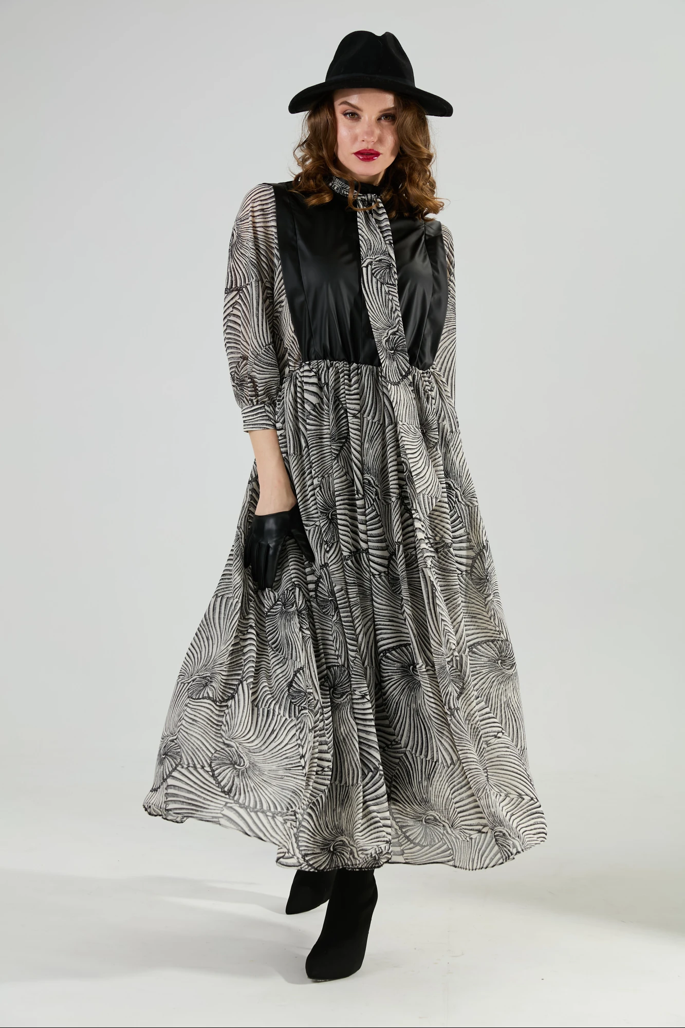 Платье NikVa 1010-1а чёрный_и_чёрно-белые_ракушки