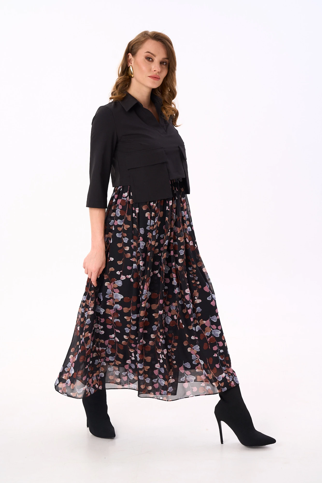 Платье NikVa 514-3 чёрный и листья мультиколор