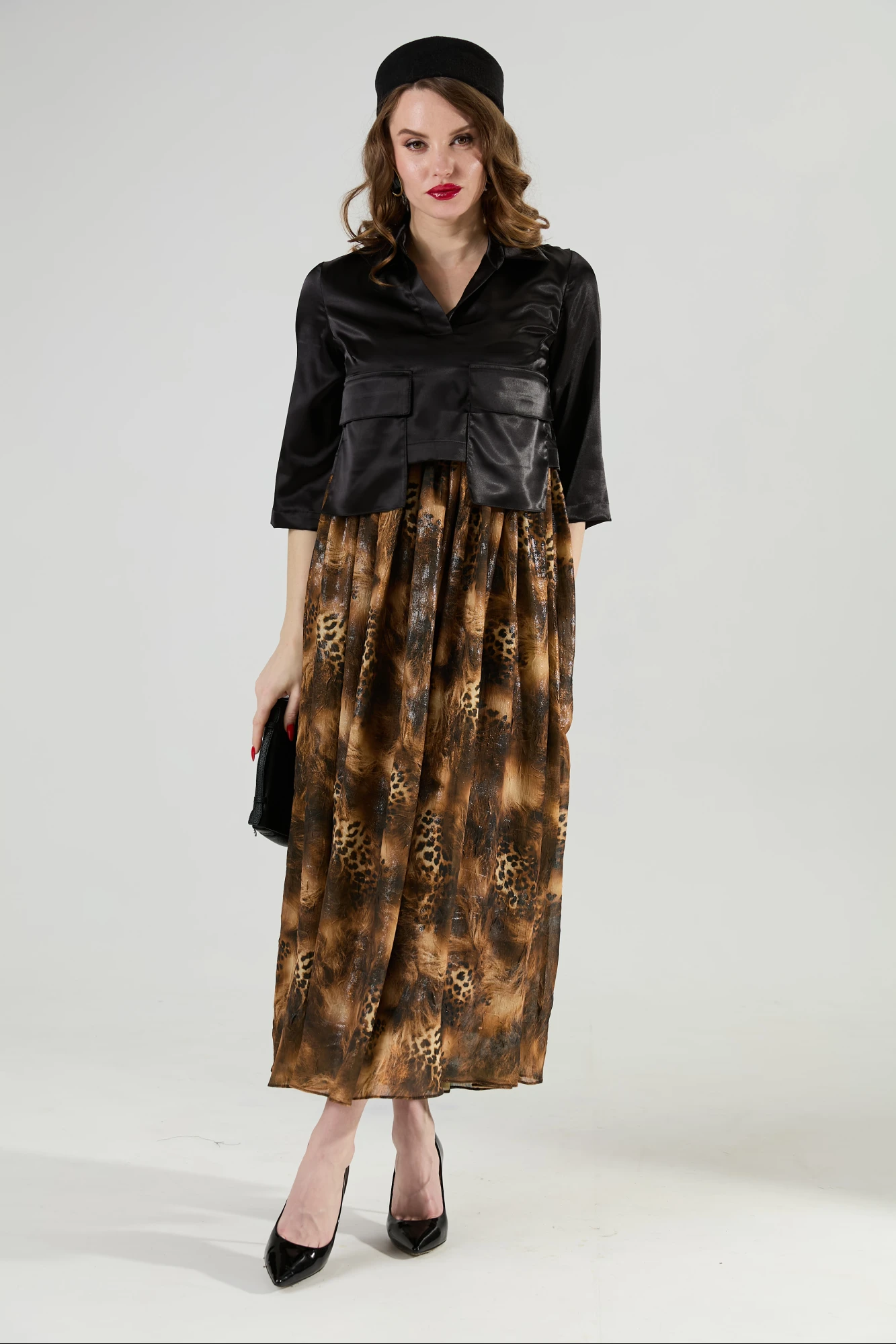 Платье NikVa 514-4 чёрный_и_кофейный_леопард