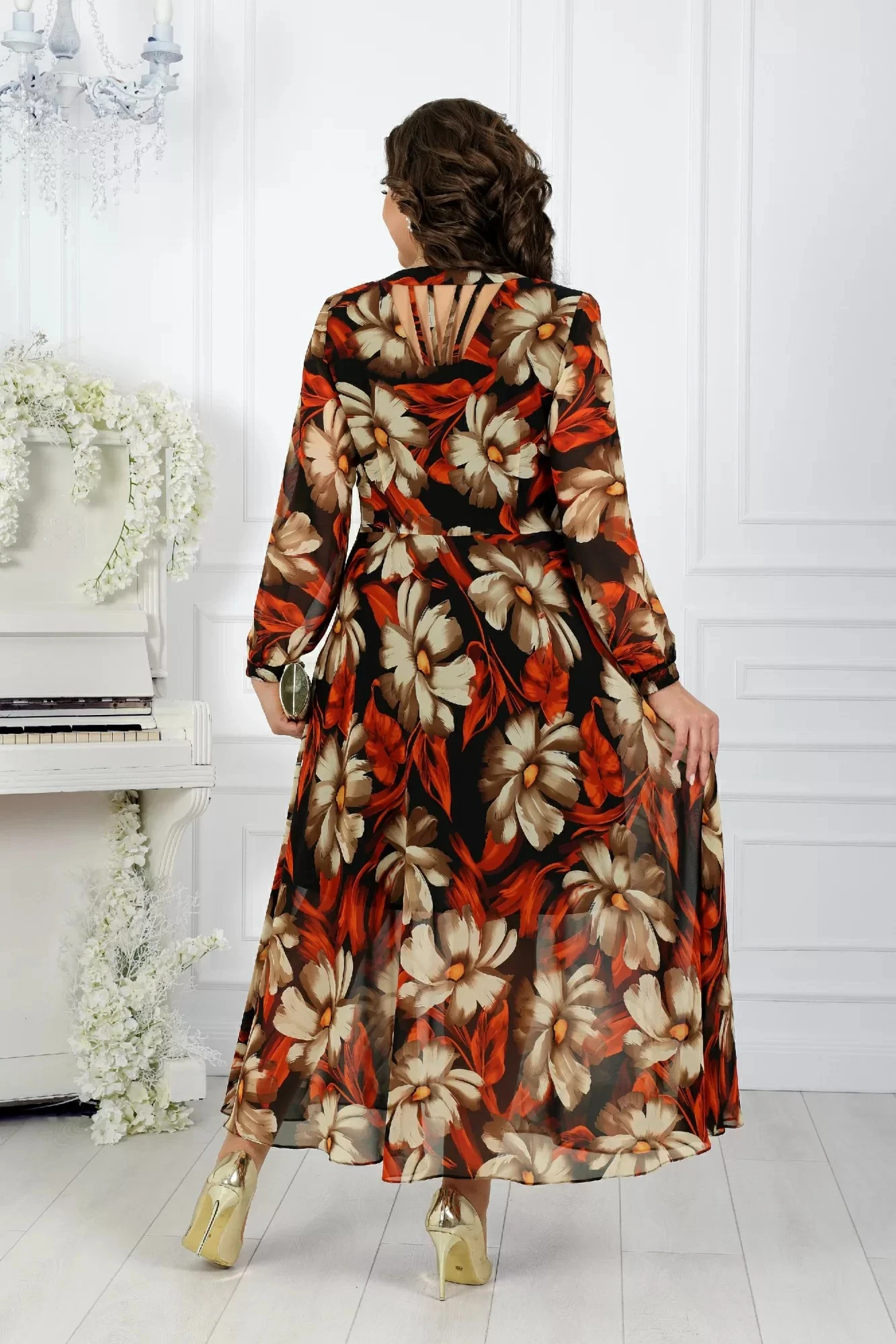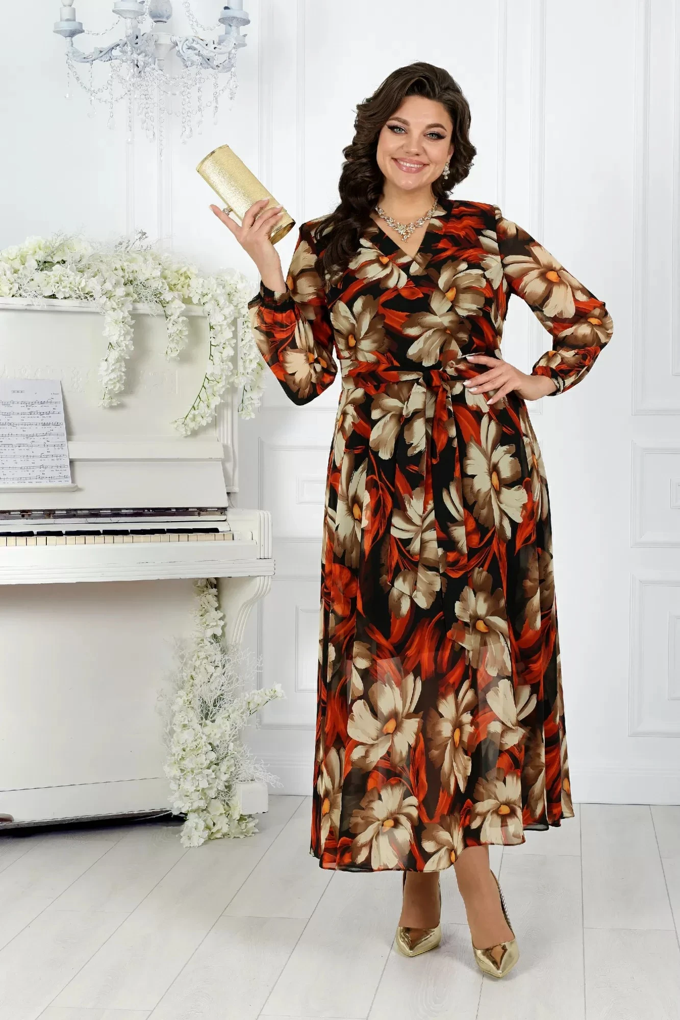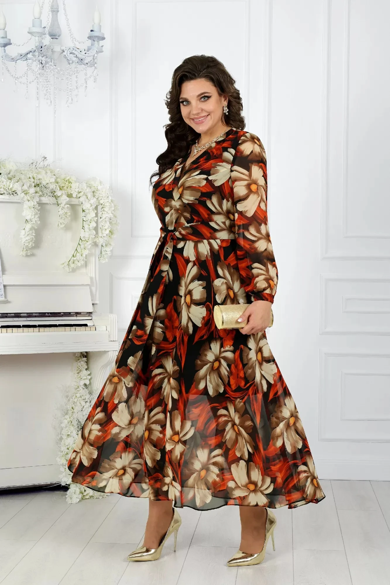 Представляем вашему вниманию изысканное шифоновое длинное платье, созданное с учетом потребностей и элегантности женщин больших размеров. Длинный фасон создает великолепный контур, который визуально вытягивает фигуру, формируя элегантный силуэт. Это платье - не просто элемент гардероба, оно - инструмент подчеркивания вашей красоты и утонченности в важных событиях.