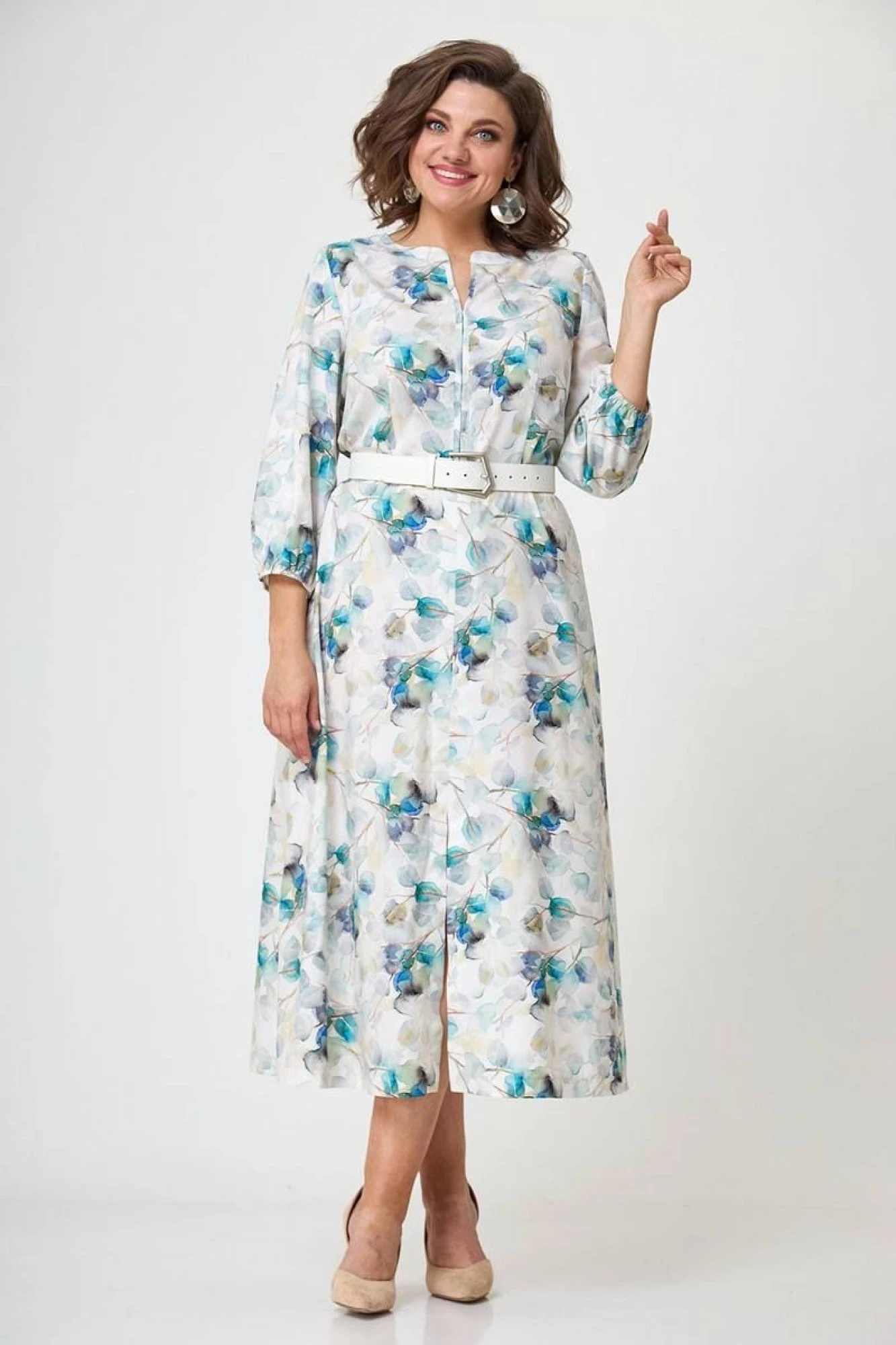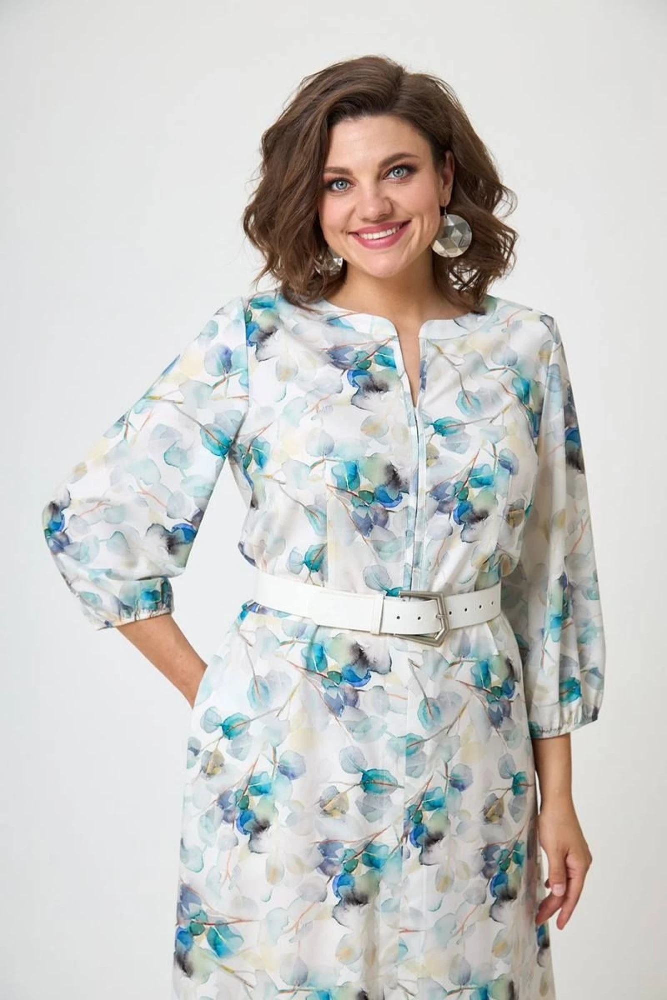 Платье макси без подкладки. Выполнено из лёгкого текстильного полотна с эластаном. Модель представлена в четырёх актуальных летних расцветках и принтах. Силуэт трапеция не сковывает движений и выгодно подчёркивает достоинства фигуры. Вырез V – образный, с небольшим, аккуратным воротником стойкой. Нагрудные вытачки вертикальные, от линии подреза на уровне талии. Рукав втачной, 7/8, мягко присобран на резинку. Разрез по переду. Карманы в боковых швах. Съёмный пояс из искусственной кожи в комплекте. Модель прекрасно подойдёт как для торжеств, так и для повседневной носки.