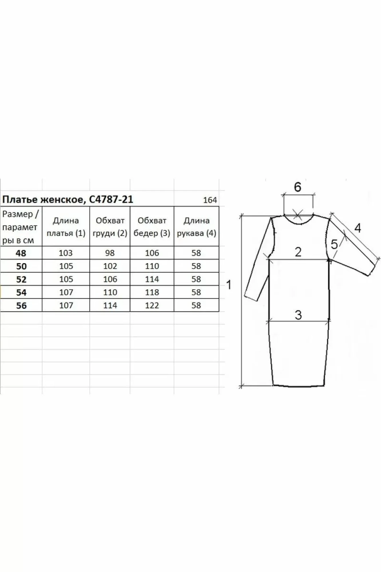Платье женское, второго слоя одежды. Прямого силуэта. Со втачным длинным рукавом. Вырез горловины обработан обтачкой. Низ рукавов и низ платья подогнут.