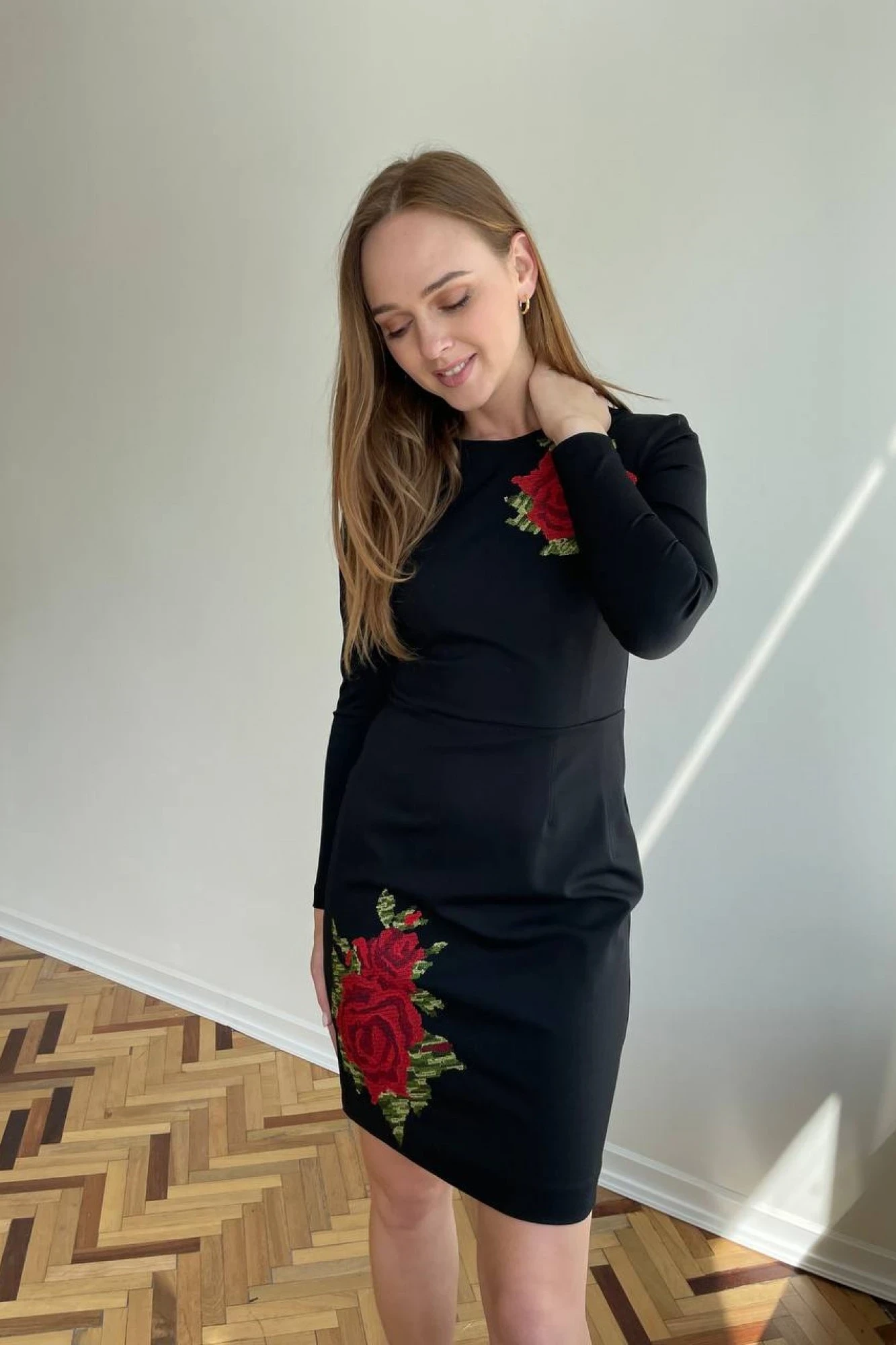 Материал плотный,немного тянется. Вышивка на платье.Отрезное по талии.