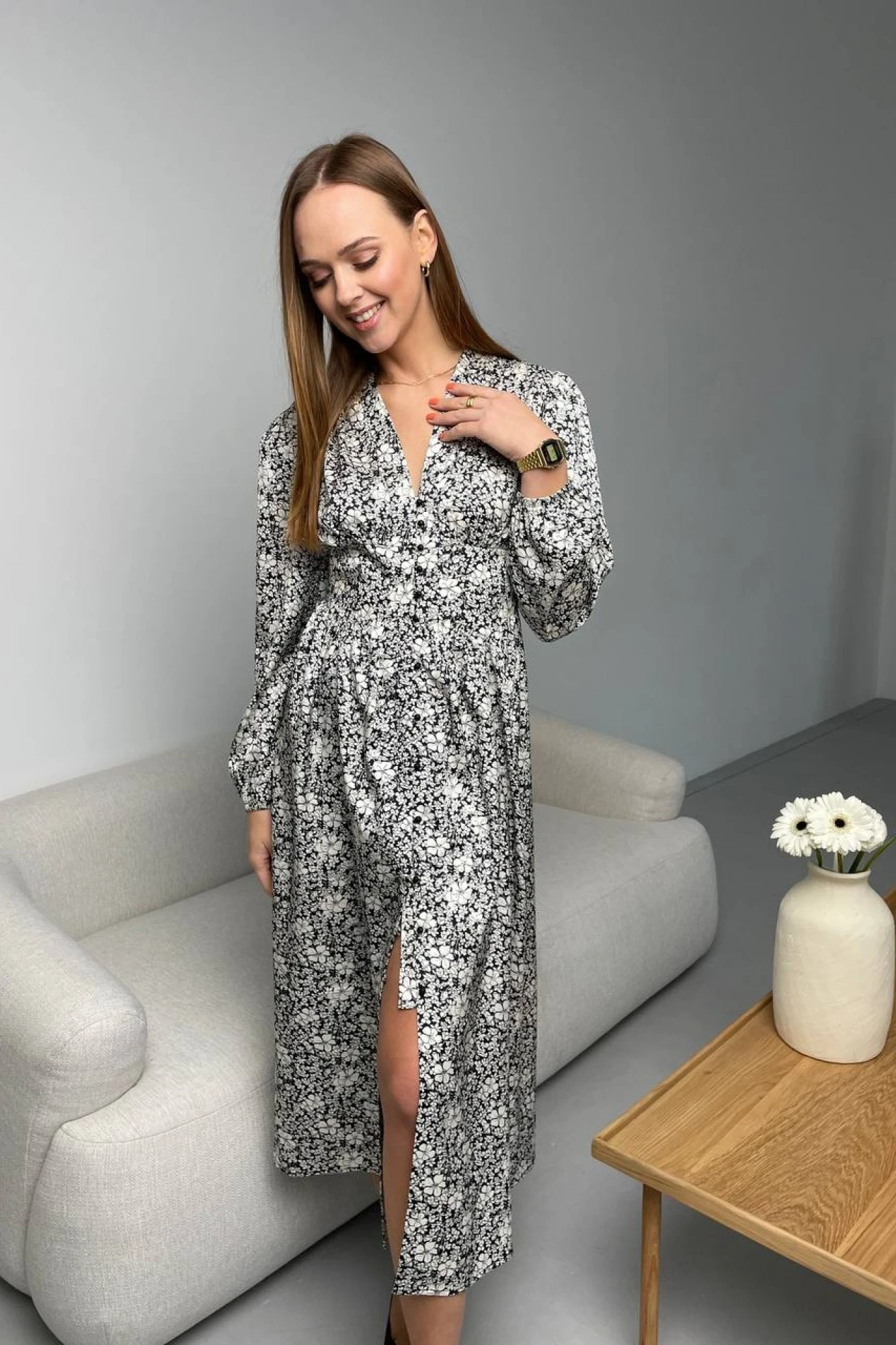Элегантное платье из гладкой плательной ткани. Талия отрезная. Платье полуприлегающего