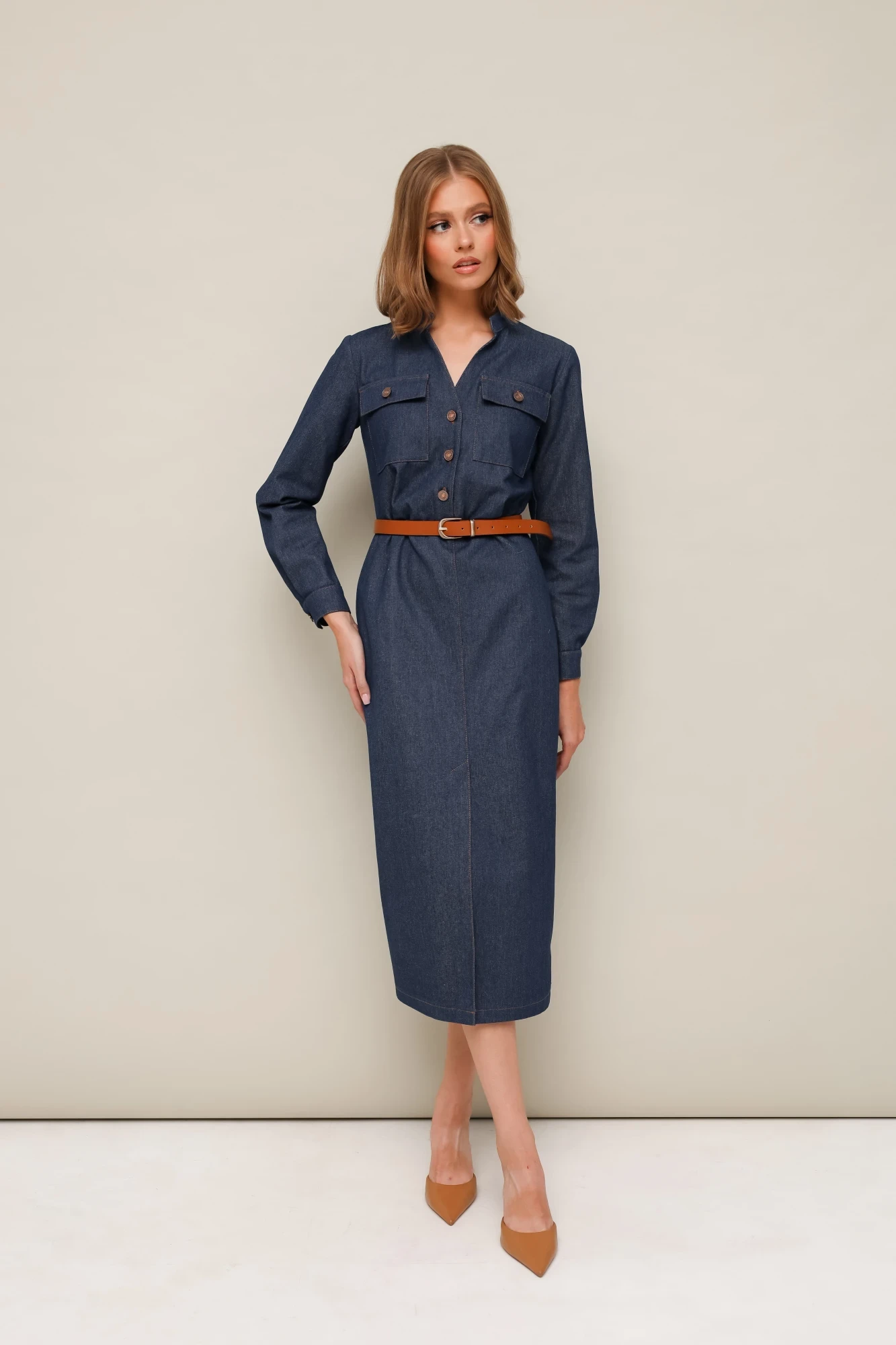 выполнено из джинсовой ткани. V-образный вырез горловины с