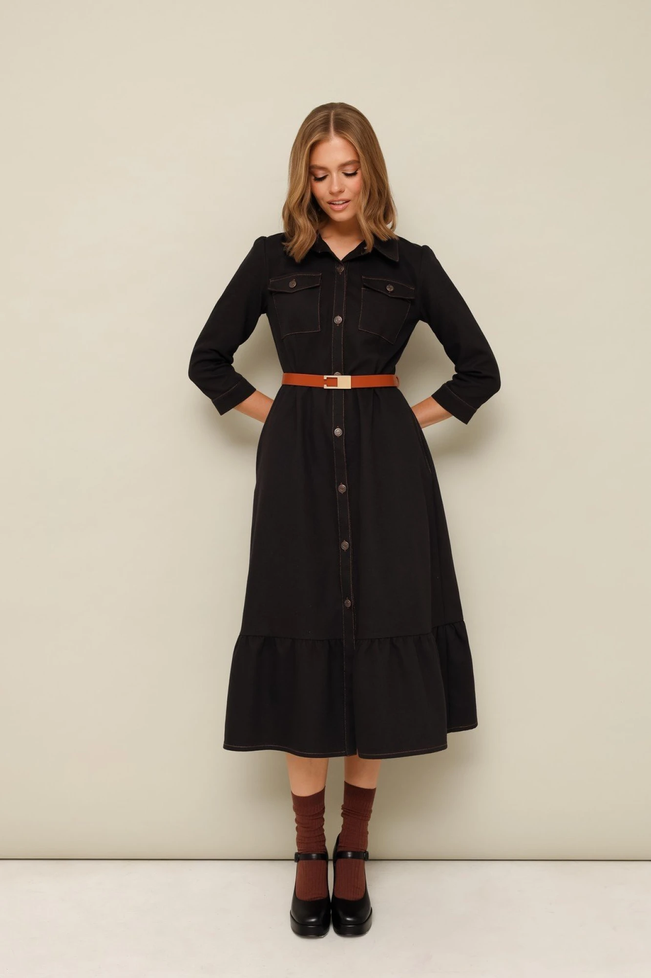 силуэта, с воланом по низу. Рукава втачные ¾ с