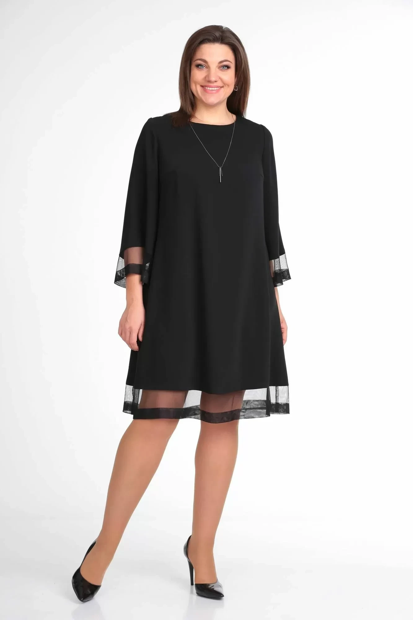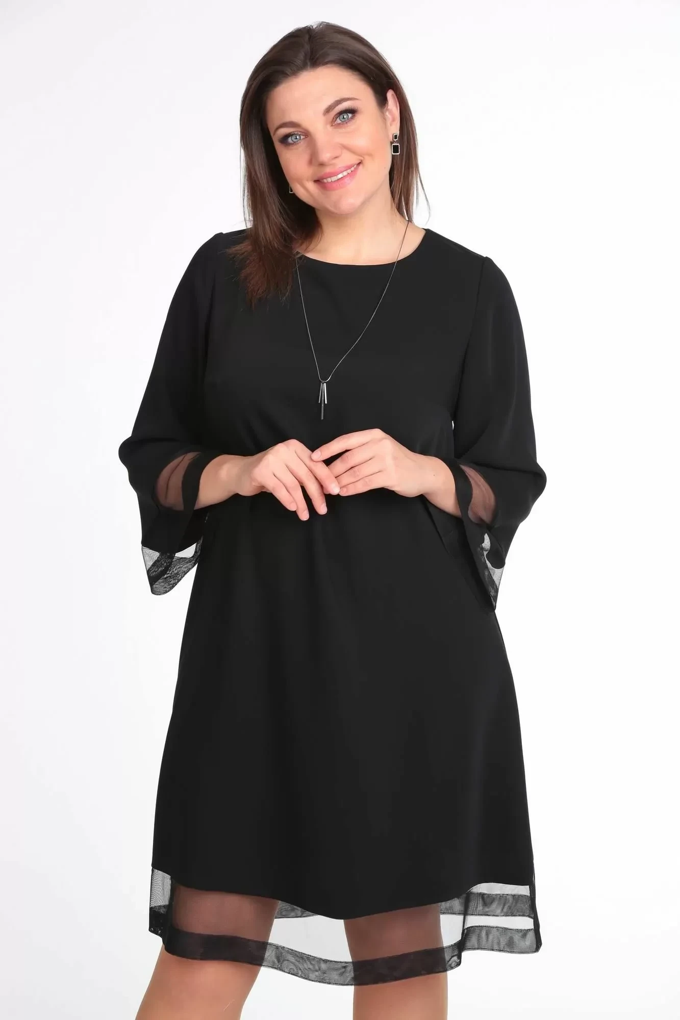 Платье женское полуприлегающего силуэта, с округлым вырезом горловины. Рукав втачной 3/4 с притачной манжетой из декоративной сетки. Низ платья обработан притачным воланом из сетки. В комплект входит украшение