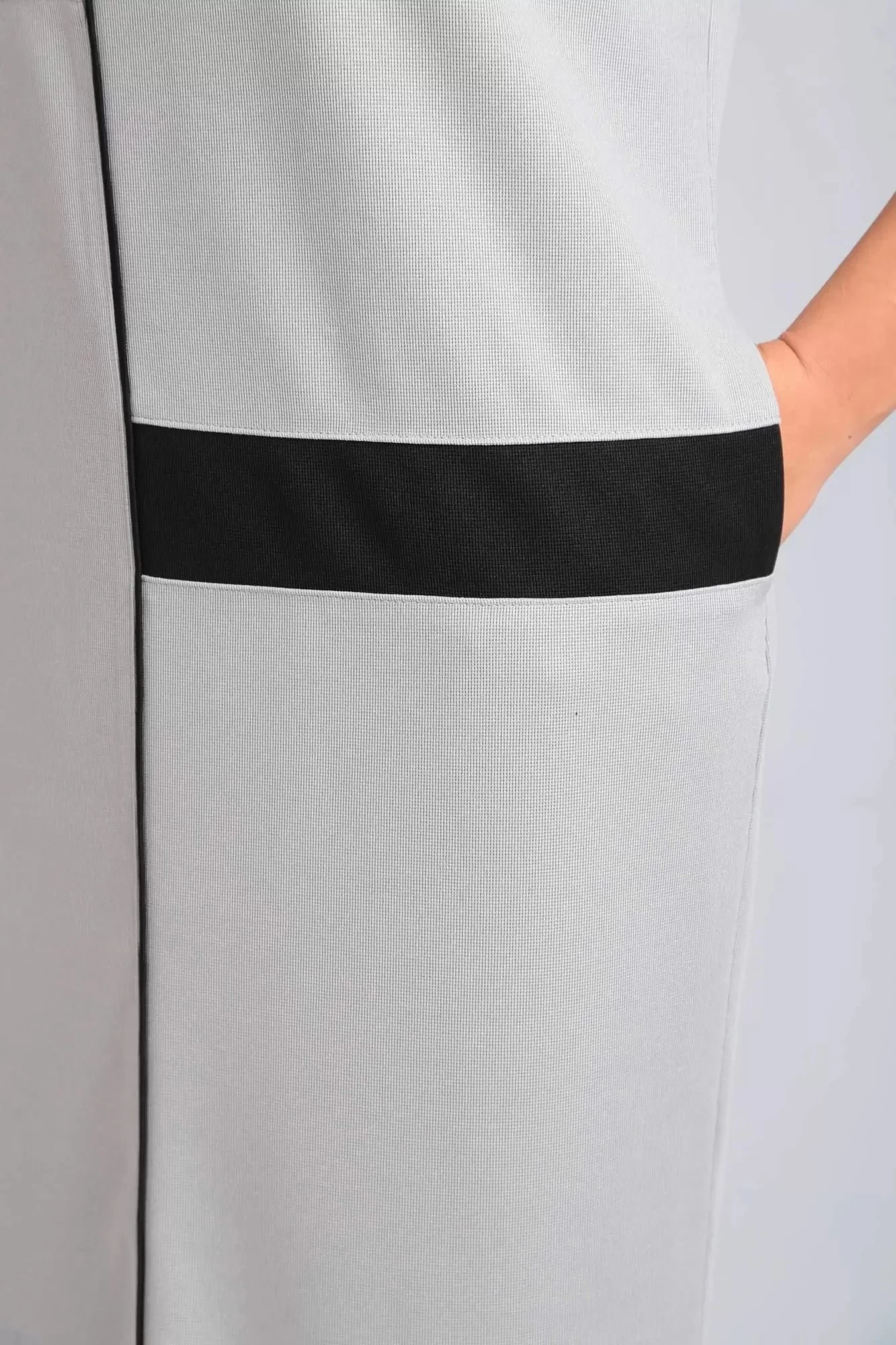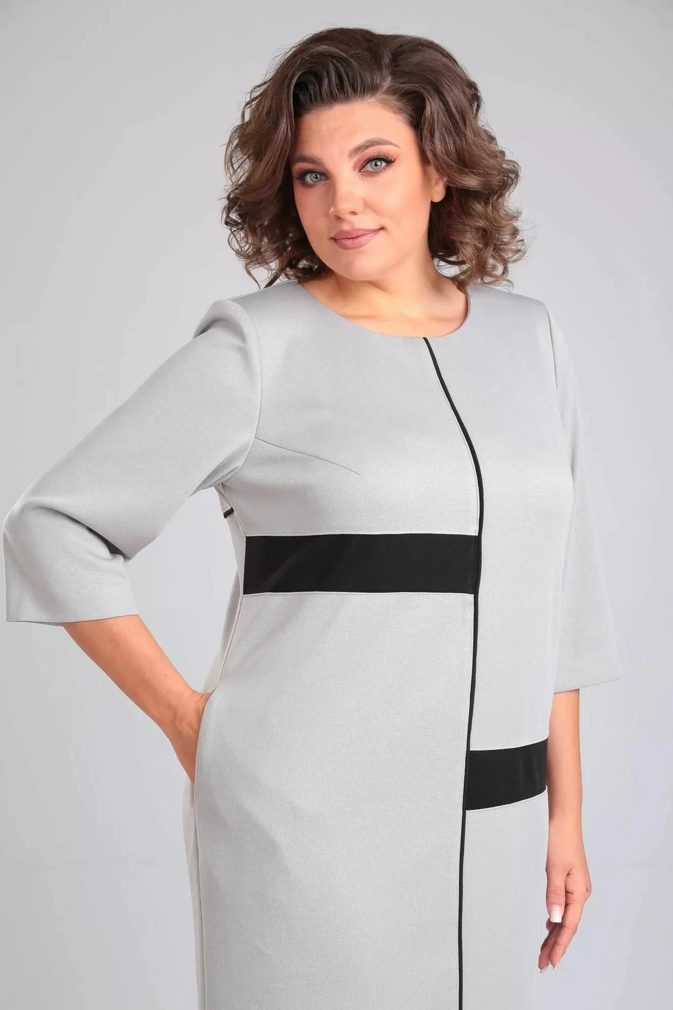 Спинка с заниженной кокеткой, в шов вставлен кант отделочный, спинка с декоративной вставкой по вертикали, с центральным швом и разрезом, с боковыми выточками. По полочке в центральном швеи декаративный кант на всю длину изделия. По линии талии и линии бёдер горизонтальные декоративные элементы в виде полос. Одношовный втачной рукав 3/4